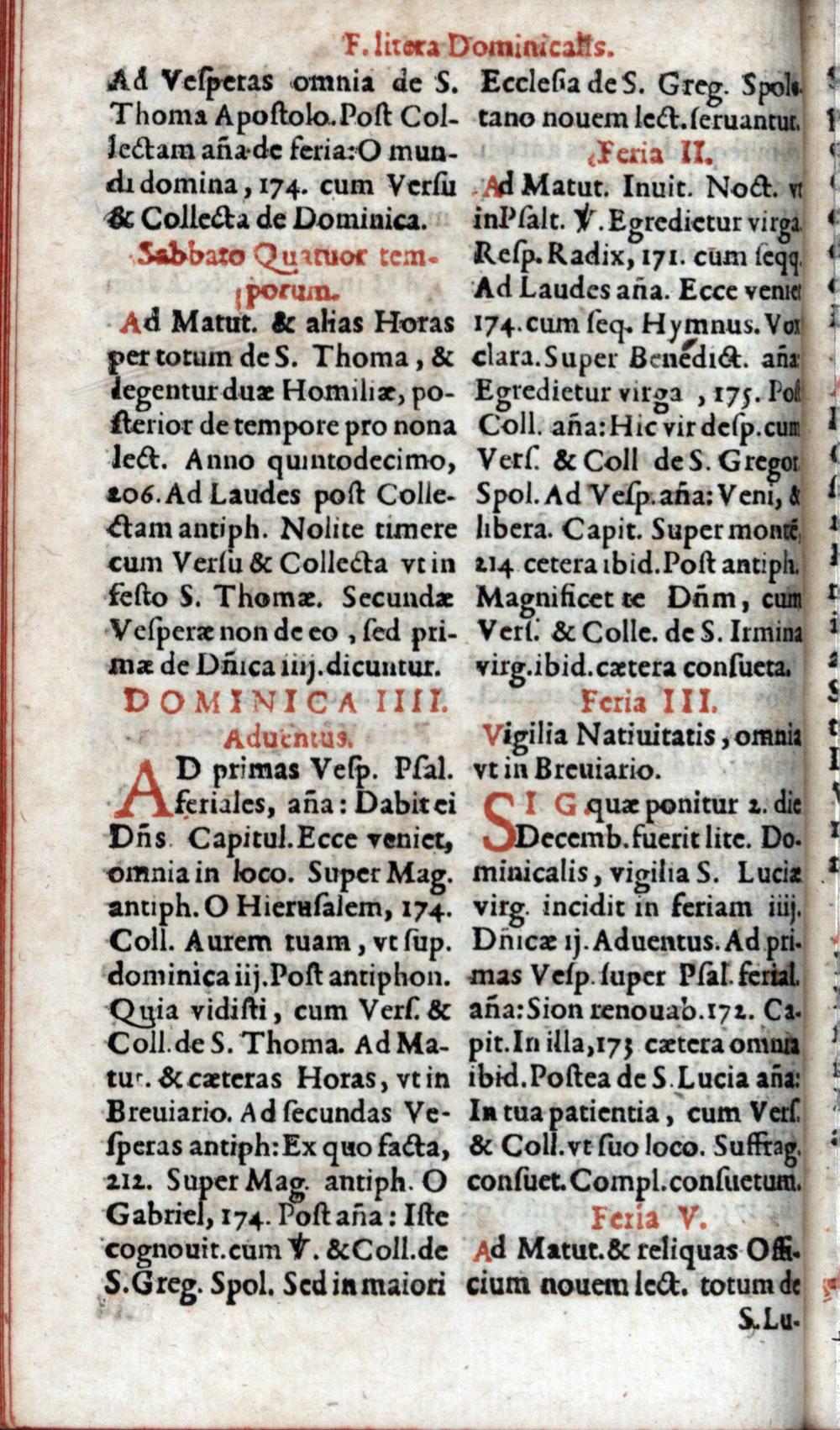 Index juxta quem per Adventum horae canonicae servantur