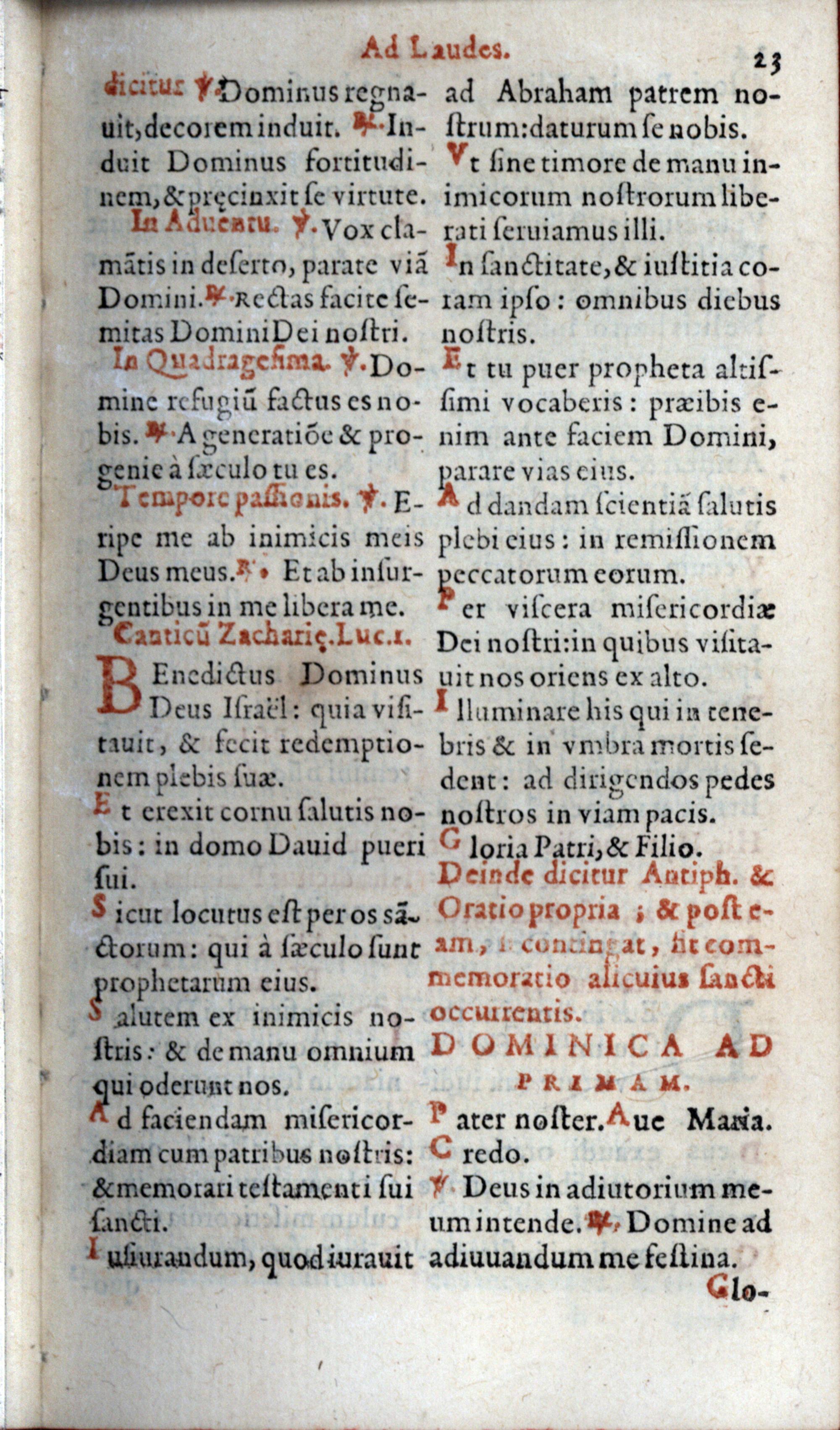 Index juxta quem per Adventum horae canonicae servantur