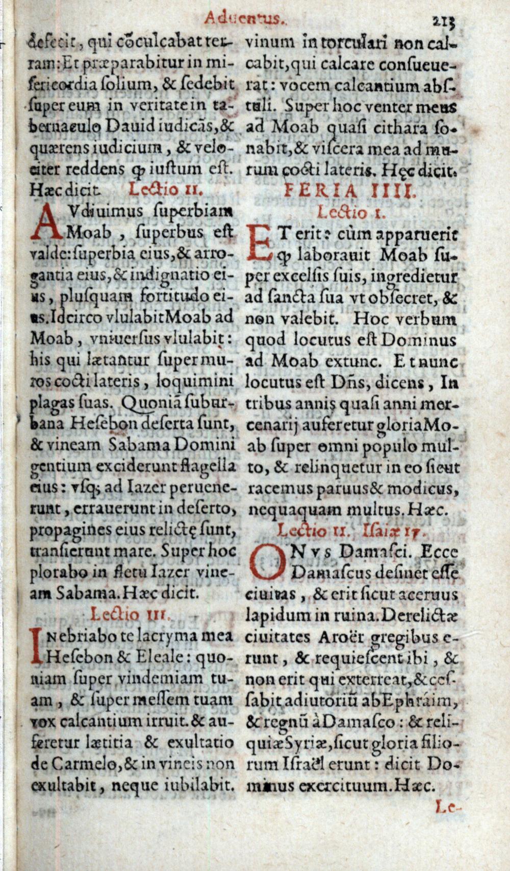 Index juxta quem per Adventum horae canonicae servantur