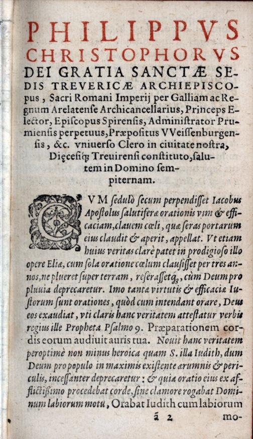 Philippus Christophorus ... sedis Trevericae Archiepiscopus ... universo clero in civitate nostra