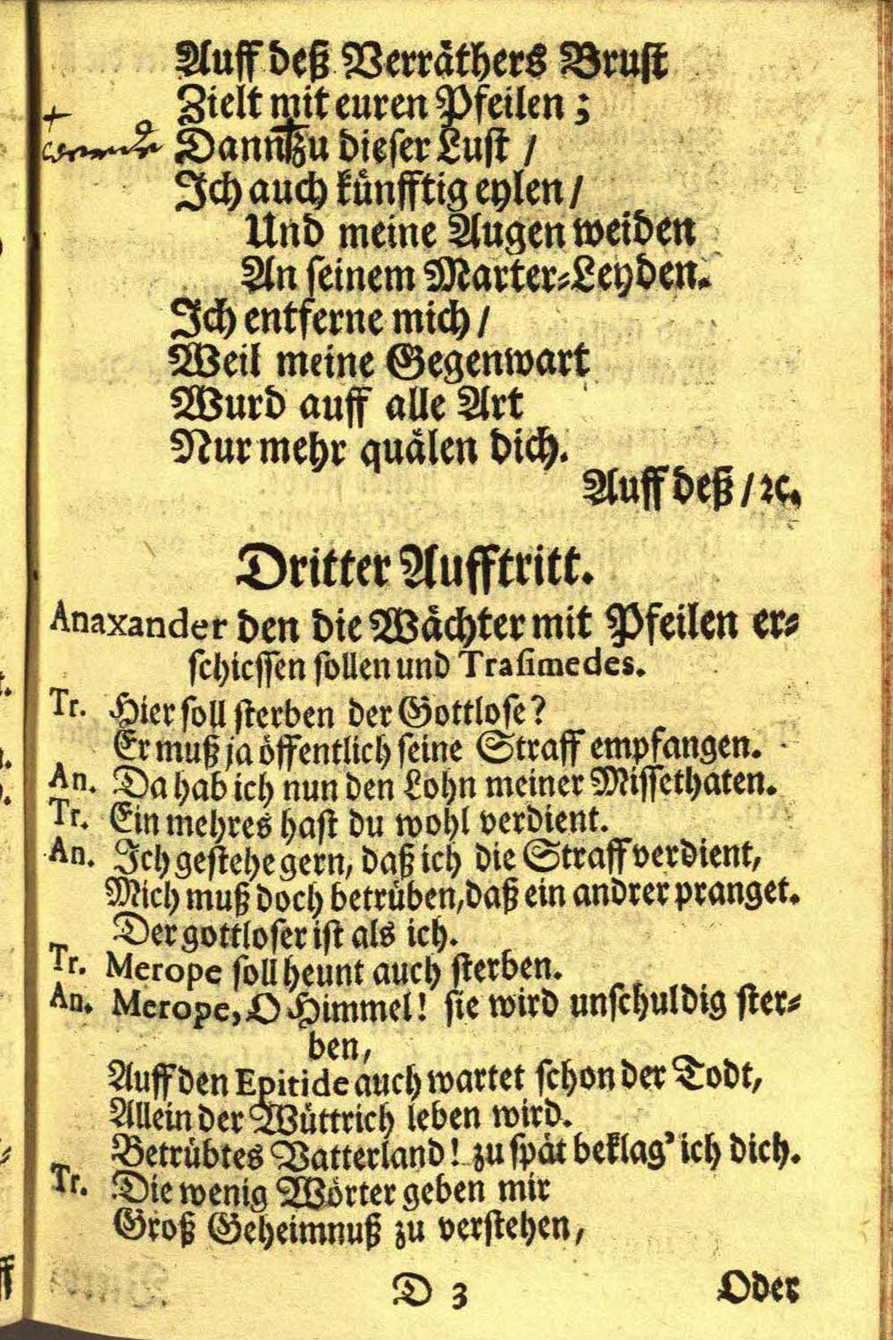 Merope Opera : Welche Zu Cremsier im Sommer des Jahrs 1727. in Wälscher Sprach gesungen/ und ins Teutsche übersetzet worden ; Auff gnädigsten Befehl, Des Hochwürdigst-Hochgebohrnen Fürsten und Herrn/ Herrn Wolffgang, Der Heil: Röm: Kirchen (Titl:) S. Marcelli Priester/ Cardinalen Von Schrattenbach, Protectorn der Teutschen Nation/ Bischoffen zu Ollmütz/ Hertzogen/ deß H. Röm: Reichs Fürsten/ und der Königl: Böheimbischen Capellen Graffen/ wie auch der Röm: Kays: und Königl: Cathol: Majest: würcklich geheimer Rath