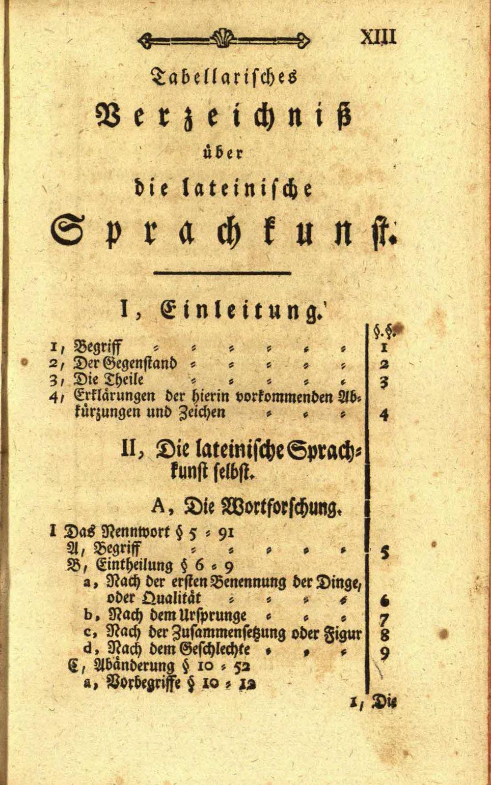 Tabellarisches Verzeichniß über die lateinische Sprachkunst