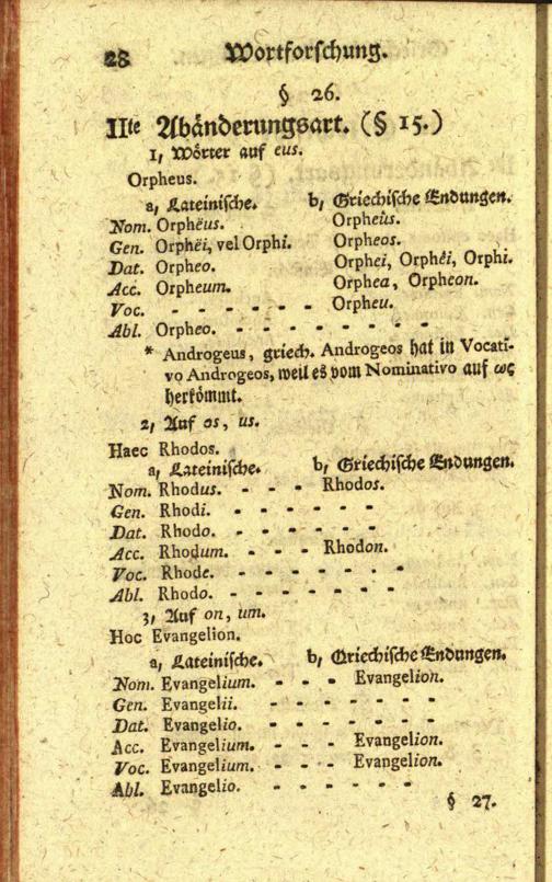 Tabellarisches Verzeichniß über die lateinische Sprachkunst