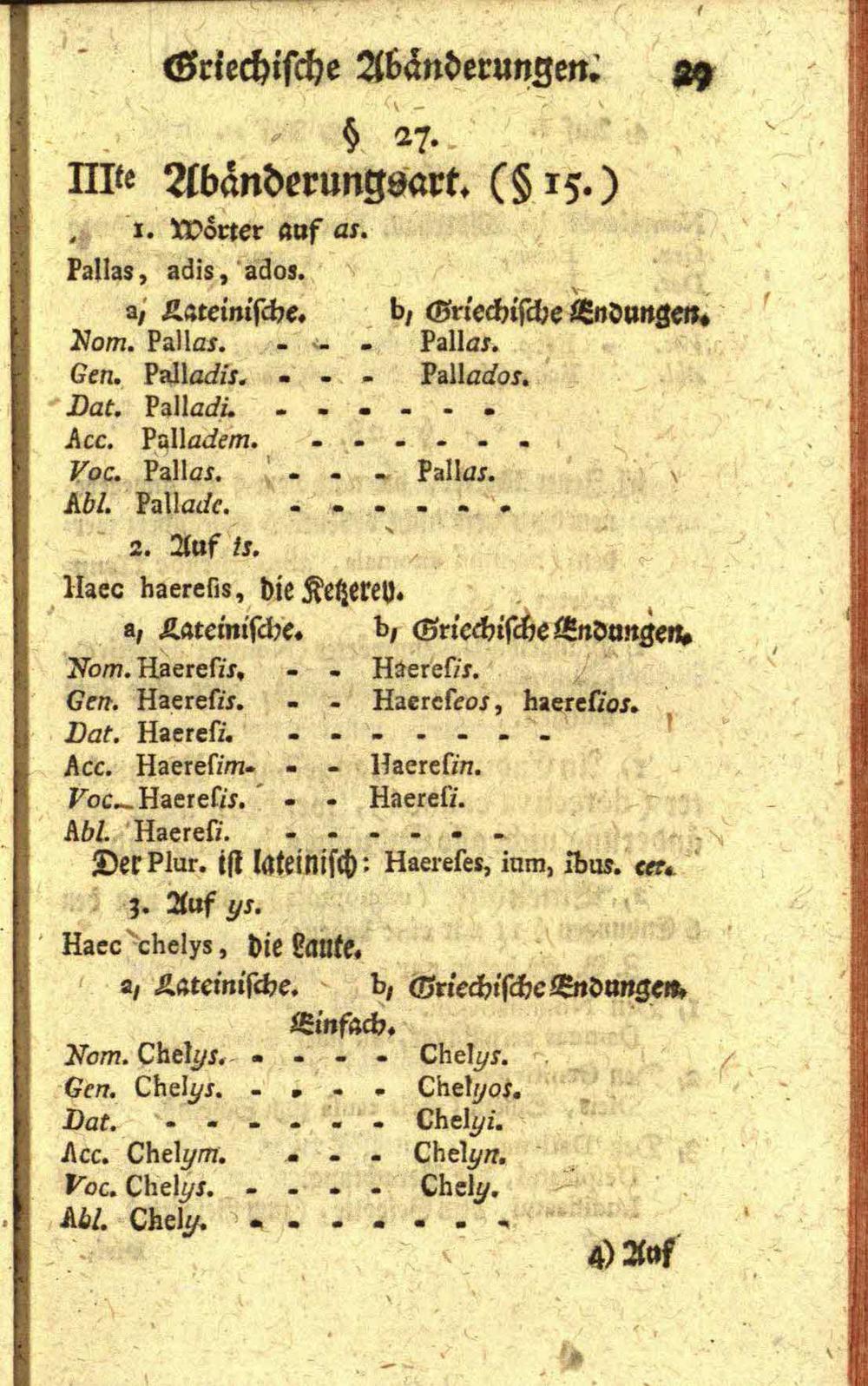 Tabellarisches Verzeichniß über die lateinische Sprachkunst
