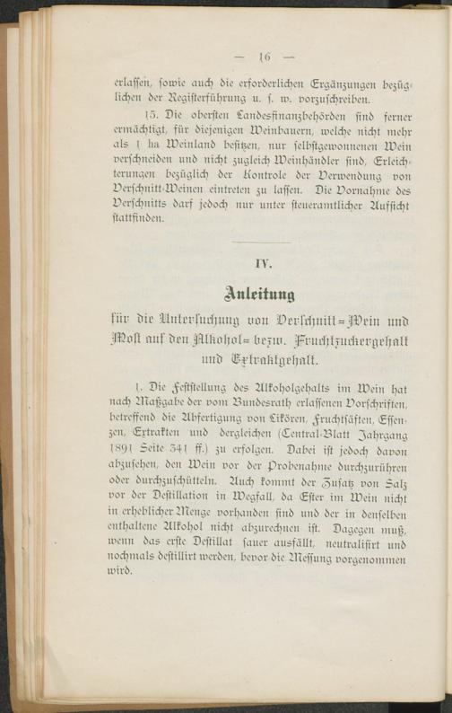 IV. Anleitung für die Untersuchung von Verschnitt-Wein und Most auf den Alkohol-...
