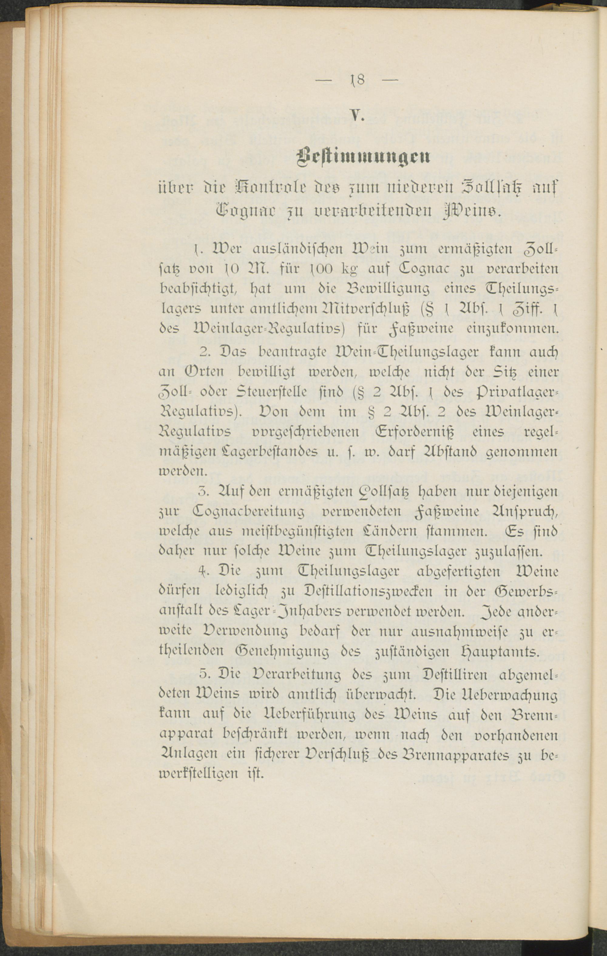 V. Bestimmungen über die Kontrole des zum niederen Zollsatz auf Cognac zu verarbeitenden Weins.
