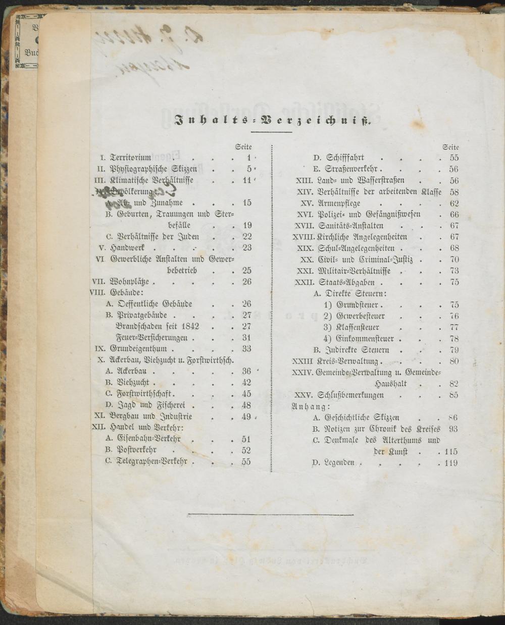 Inhalts-Verzeichniß.