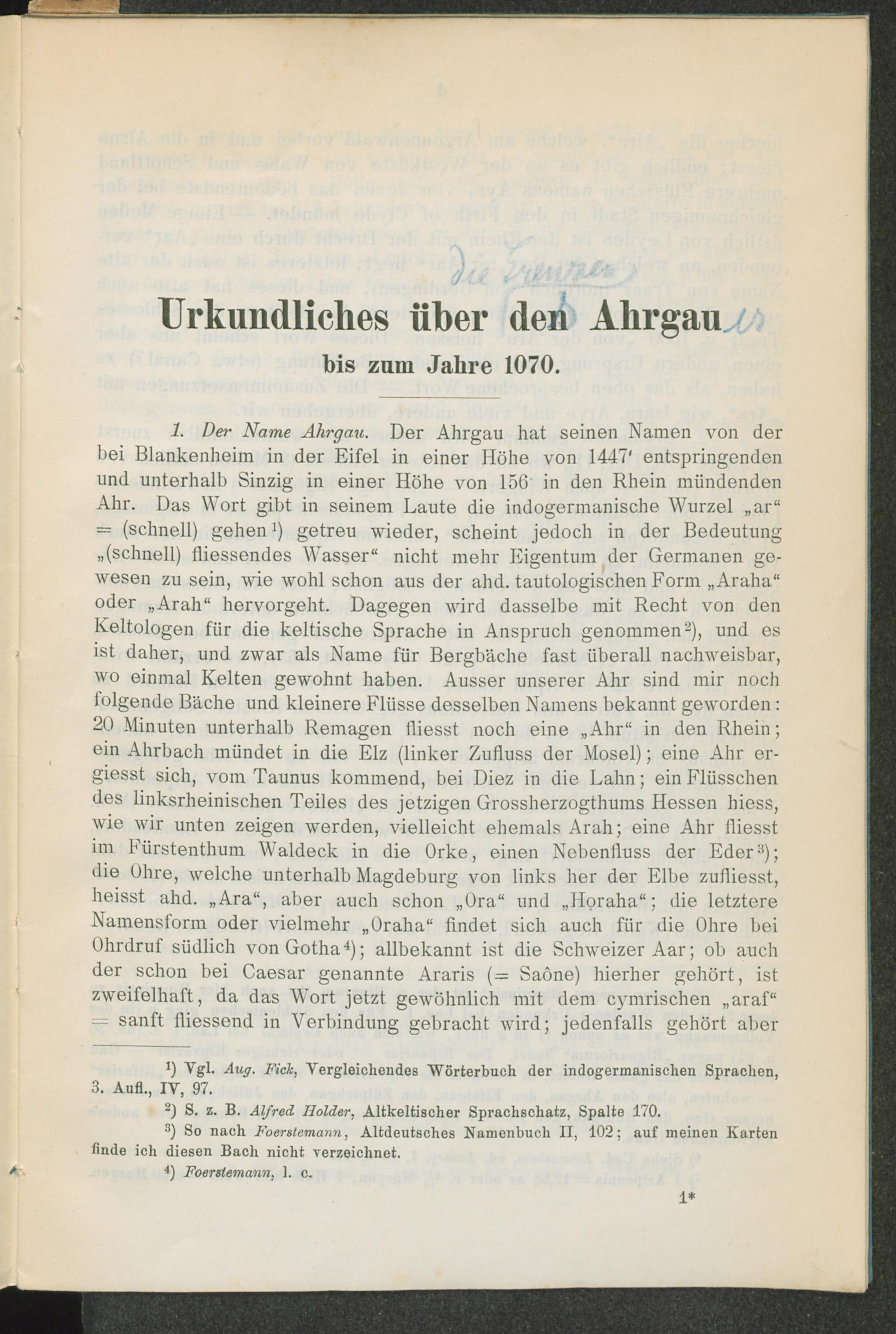 Urkundliches über den Ahrgau bis zum Jahre 1070