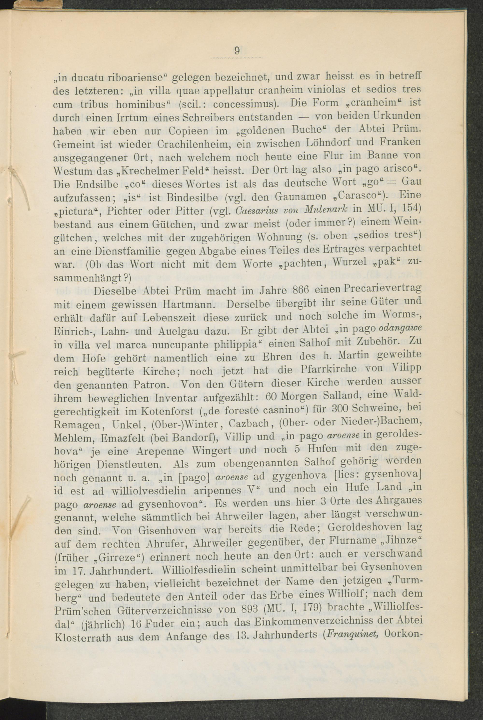Urkundliches über den Ahrgau bis zum Jahre 1070