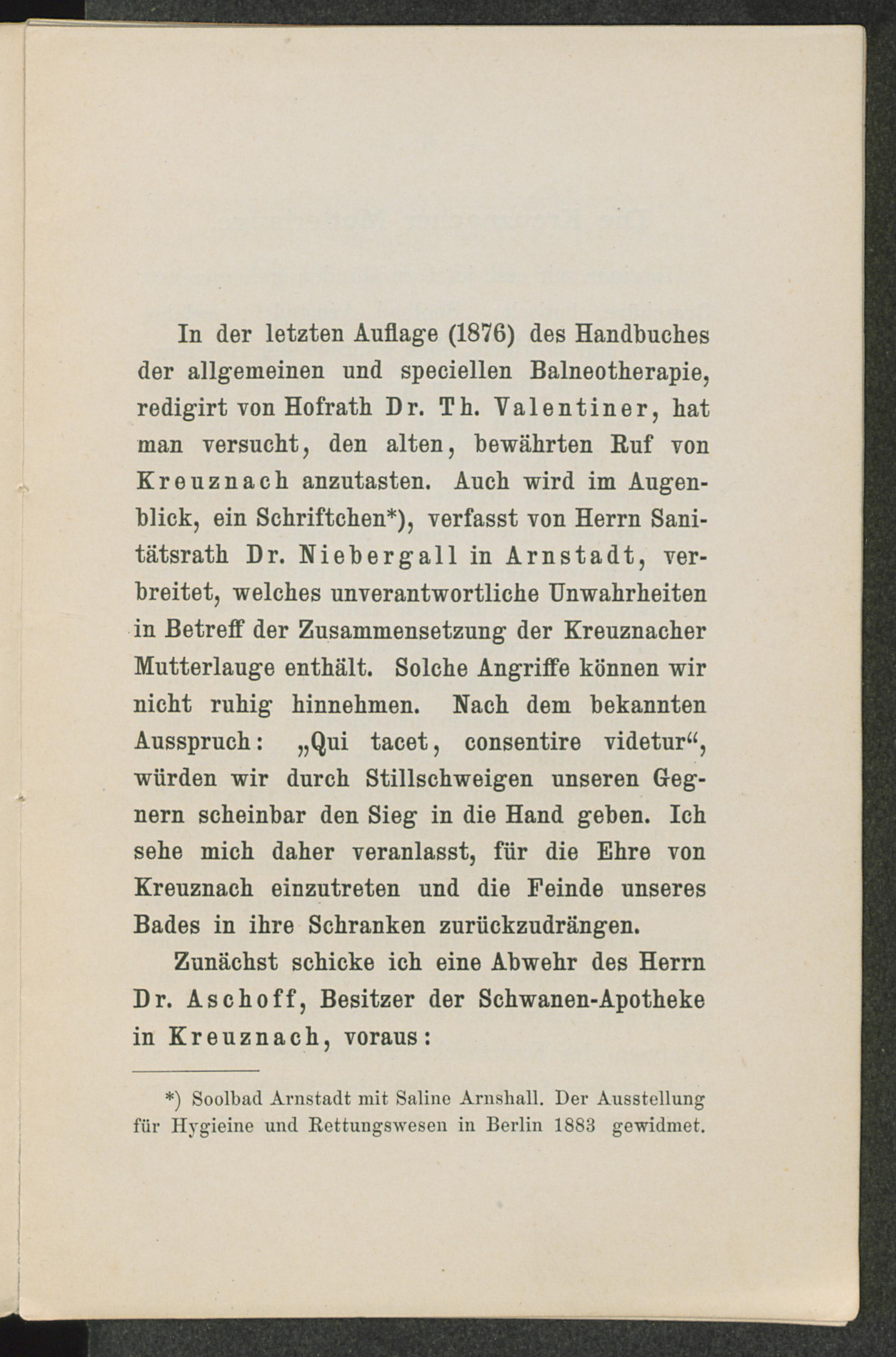 Über den Werth von Kreuznach und seine Stellung unter den Soolbädern