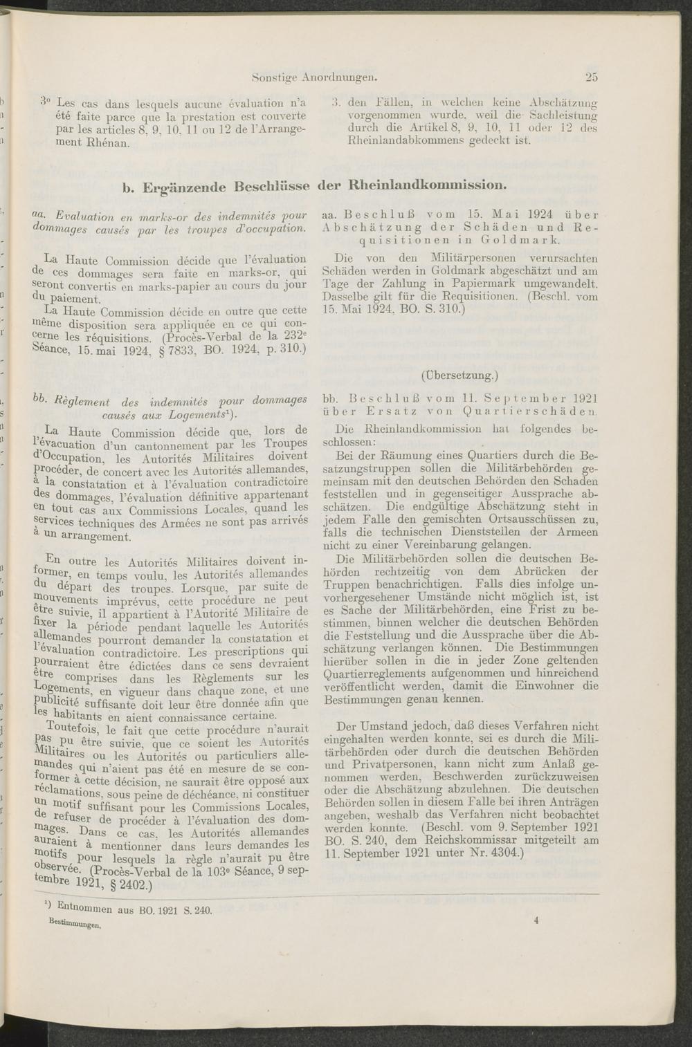 Bestimmungen der Interalliierten Rheinlandoberkommission und der Besatzungsarmeen über Einquartierung, Requisitionen und Schäden : (Ergänzungsheft zu der Schrift "Verträge und Ordonnanzen") / zsgest. von Werner Vogels