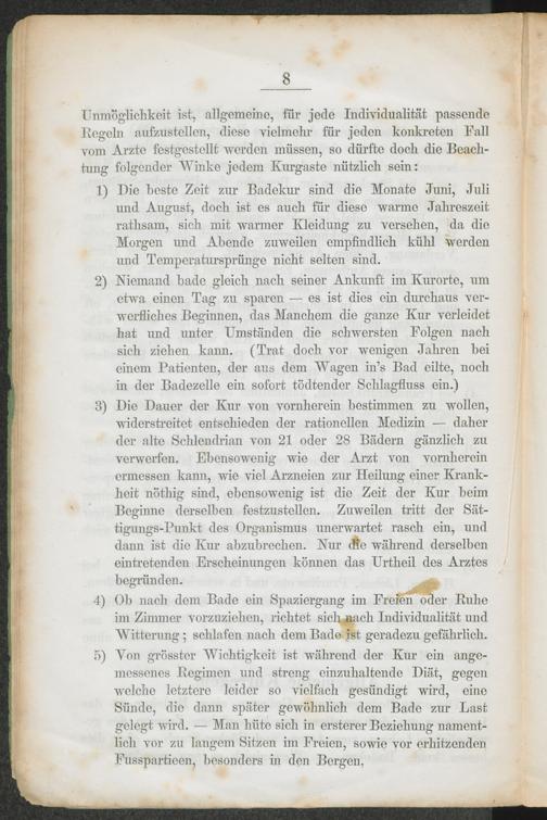 Communicationen. / Besondere Bemerkungen für die Kurgäste.