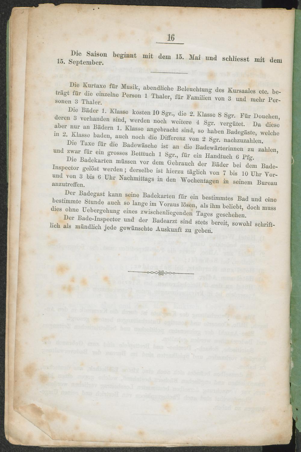Communicationen. / Besondere Bemerkungen für die Kurgäste.