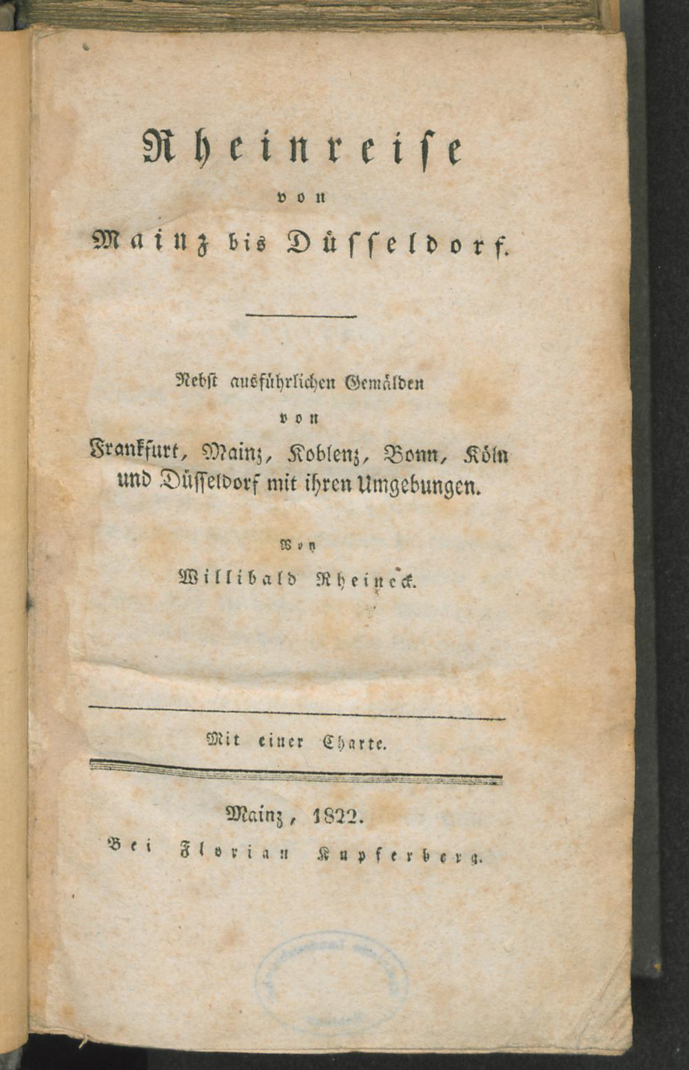 Rheinreise von Mainz bis Düsseldorf : nebst ausführlichen Gemälden von Frankfurt, Mainz, Koblenz, Bonn, Köln und Düsseldorf mit ihren Umgebungen / von Willibald Rheineck