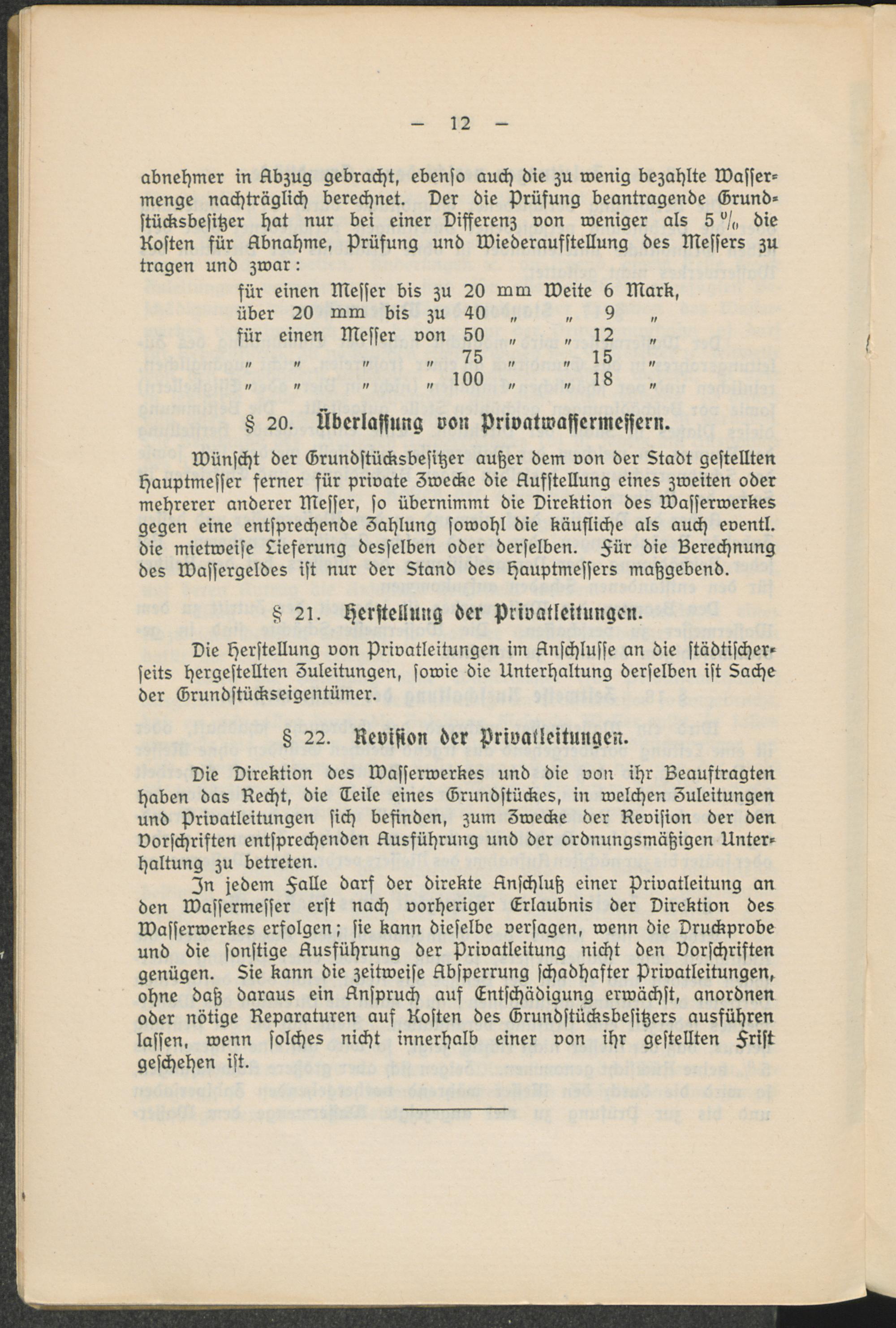 II. Ortsstatut betreffend die Benutzung der städtischen Wasserleitung.