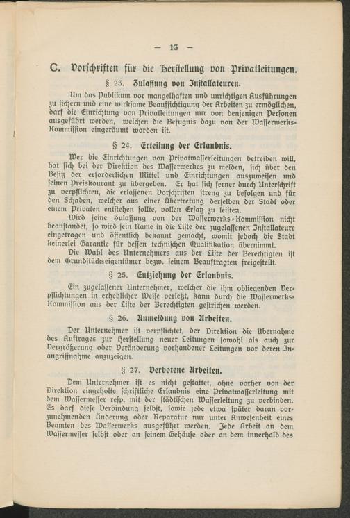 Bestimmungen betreffend die Benutzung der städtischen Wasserleitung / Residenzstadt...