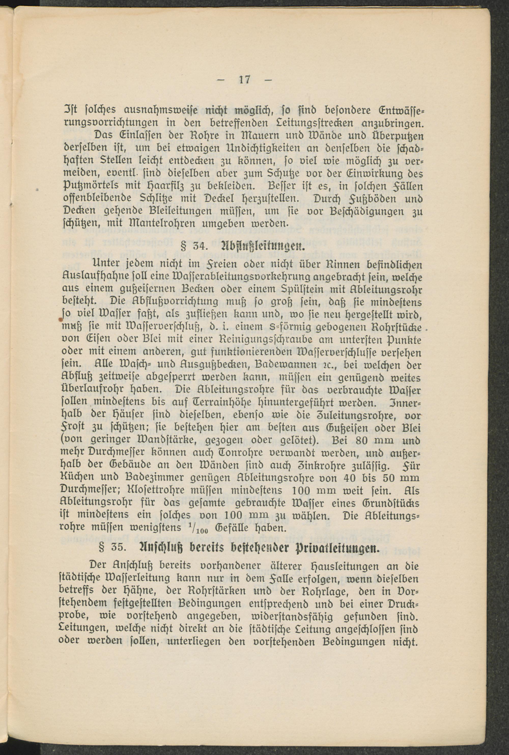 II. Ortsstatut betreffend die Benutzung der städtischen Wasserleitung.