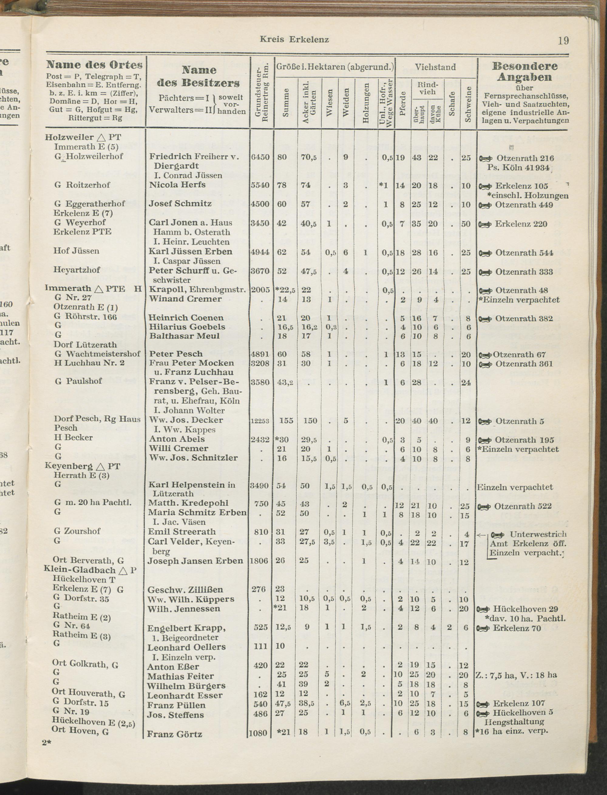 Landwirtschaftliches Adreßbuch der Rittergüter und Höfe der Rheinprovinz einschl. Landesteil Birkenfeld : Verzeichnis sämtlicher Rittergüter, Güter und Höfe von ca. 10 ha aufwärts mit Angabe der Gutseigenschaft, der Gesamtfläche und des Flächeninhalts der einzelnen Kulturen, des Viehbestandes, der eigenen industriellen Anlagen und Fernsprechanschlüsse, Angabe der Besitzer, Pächter und Verwalter, der Post-, Telegraphen- und Eisenbahnstationen und deren Entfernung vom Gute, der Land- und Amtsgerichte, einem alphabetischen Orts- und Personenregister, einem Verzeichnis der wichtigsten staatlichen Behörden und Dienststellen, der landwirtschaftlichen Vereine und Körperschaften und einer mehrfarbigen Landkarte im Maßstabe 1 : 1000000 / mit Unterstützung der landwirtschaftskammer zu Bonn a. Rh. nach amtlichen Quellen und auf Grund direkter Angaben bearb. von Ernst Seyfert und Hans Wehner ; mit einer Einleitung von Müller und Engels