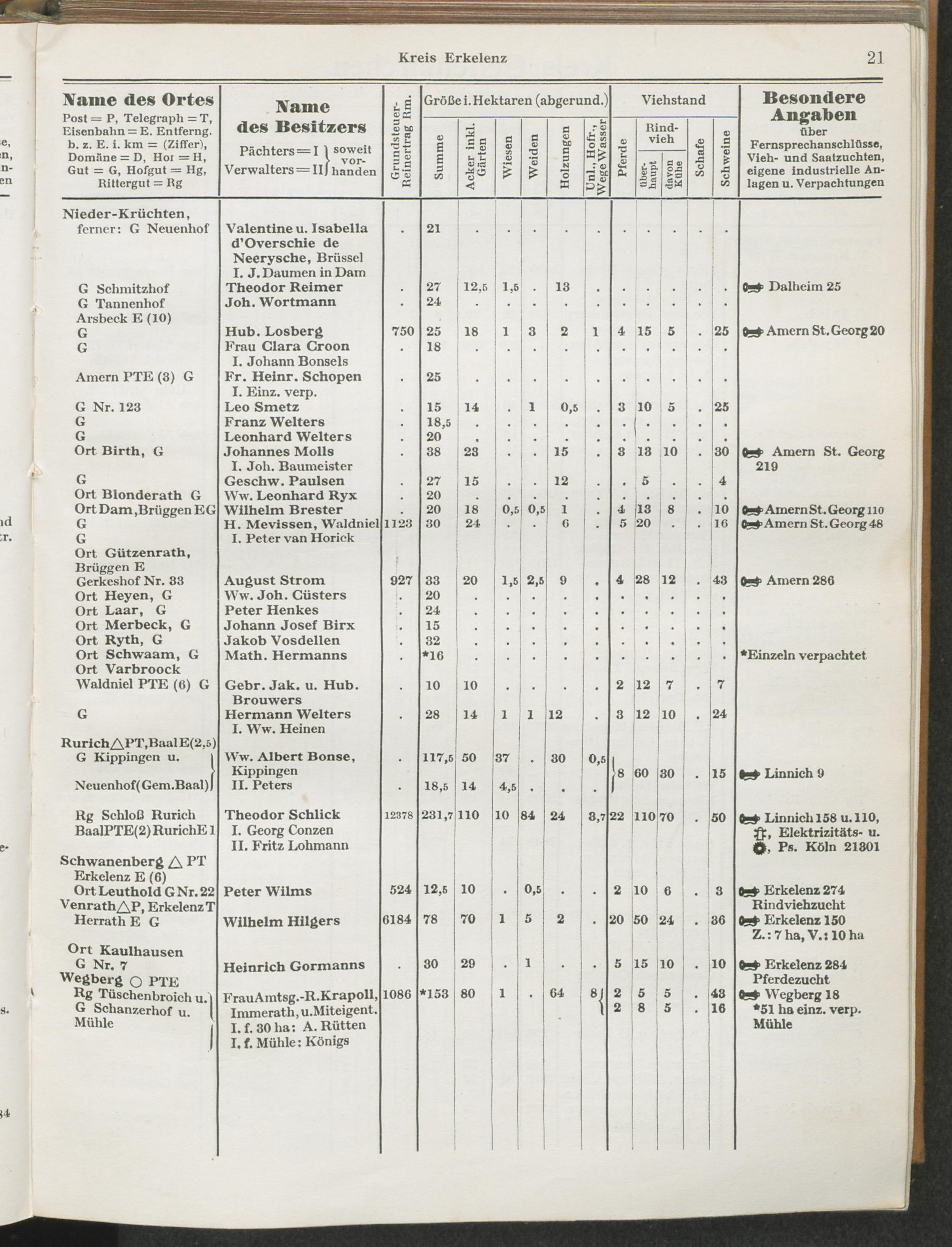 Landwirtschaftliches Adreßbuch der Rittergüter und Höfe der Rheinprovinz einschl. Landesteil Birkenfeld : Verzeichnis sämtlicher Rittergüter, Güter und Höfe von ca. 10 ha aufwärts mit Angabe der Gutseigenschaft, der Gesamtfläche und des Flächeninhalts der einzelnen Kulturen, des Viehbestandes, der eigenen industriellen Anlagen und Fernsprechanschlüsse, Angabe der Besitzer, Pächter und Verwalter, der Post-, Telegraphen- und Eisenbahnstationen und deren Entfernung vom Gute, der Land- und Amtsgerichte, einem alphabetischen Orts- und Personenregister, einem Verzeichnis der wichtigsten staatlichen Behörden und Dienststellen, der landwirtschaftlichen Vereine und Körperschaften und einer mehrfarbigen Landkarte im Maßstabe 1 : 1000000 / mit Unterstützung der landwirtschaftskammer zu Bonn a. Rh. nach amtlichen Quellen und auf Grund direkter Angaben bearb. von Ernst Seyfert und Hans Wehner ; mit einer Einleitung von Müller und Engels