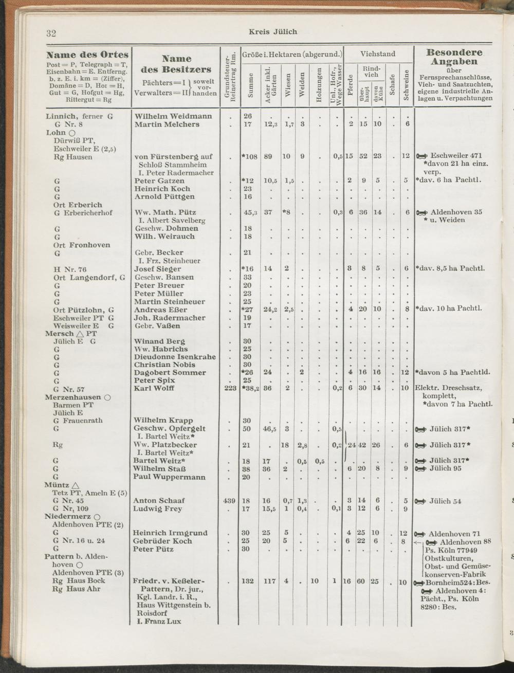 Landwirtschaftliches Adreßbuch der Rittergüter und Höfe der Rheinprovinz einschl. Landesteil Birkenfeld : Verzeichnis sämtlicher Rittergüter, Güter und Höfe von ca. 10 ha aufwärts mit Angabe der Gutseigenschaft, der Gesamtfläche und des Flächeninhalts der einzelnen Kulturen, des Viehbestandes, der eigenen industriellen Anlagen und Fernsprechanschlüsse, Angabe der Besitzer, Pächter und Verwalter, der Post-, Telegraphen- und Eisenbahnstationen und deren Entfernung vom Gute, der Land- und Amtsgerichte, einem alphabetischen Orts- und Personenregister, einem Verzeichnis der wichtigsten staatlichen Behörden und Dienststellen, der landwirtschaftlichen Vereine und Körperschaften und einer mehrfarbigen Landkarte im Maßstabe 1 : 1000000 / mit Unterstützung der landwirtschaftskammer zu Bonn a. Rh. nach amtlichen Quellen und auf Grund direkter Angaben bearb. von Ernst Seyfert und Hans Wehner ; mit einer Einleitung von Müller und Engels