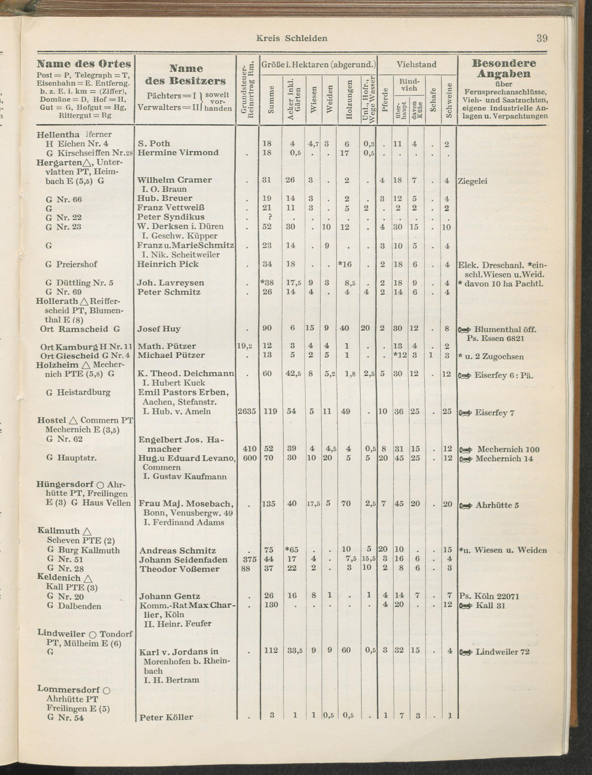 Landwirtschaftliches Adreßbuch der Rittergüter und Höfe der Rheinprovinz einschl. Landesteil Birkenfeld : Verzeichnis sämtlicher Rittergüter, Güter und Höfe von ca. 10 ha aufwärts mit Angabe der Gutseigenschaft, der Gesamtfläche und des Flächeninhalts der einzelnen Kulturen, des Viehbestandes, der eigenen industriellen Anlagen und Fernsprechanschlüsse, Angabe der Besitzer, Pächter und Verwalter, der Post-, Telegraphen- und Eisenbahnstationen und deren Entfernung vom Gute, der Land- und Amtsgerichte, einem alphabetischen Orts- und Personenregister, einem Verzeichnis der wichtigsten staatlichen Behörden und Dienststellen, der landwirtschaftlichen Vereine und Körperschaften und einer mehrfarbigen Landkarte im Maßstabe 1 : 1000000 / mit Unterstützung der landwirtschaftskammer zu Bonn a. Rh. nach amtlichen Quellen und auf Grund direkter Angaben bearb. von Ernst Seyfert und Hans Wehner ; mit einer Einleitung von Müller und Engels
