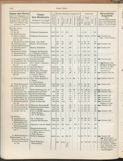 Landwirtschaftliches Adreßbuch der Rittergüter und Höfe der Rheinprovinz einschl. Landesteil Birkenfeld : Verzeichnis sämtlicher Rittergüter, Güter und Höfe von ca. 10 ha aufwärts mit Angabe der Gutseigenschaft, der Gesamtfläche und des Flächeninhalts der einzelnen Kulturen, des Viehbestandes, der eigenen industriellen Anlagen und Fernsprechanschlüsse, Angabe der Besitzer, Pächter und Verwalter, der Post-, Telegraphen- und Eisenbahnstationen und deren Entfernung vom Gute, der Land- und Amtsgerichte, einem alphabetischen Orts- und Personenregister, einem Verzeichnis der wichtigsten staatlichen Behörden und Dienststellen, der landwirtschaftlichen Vereine und Körperschaften und einer mehrfarbigen Landkarte im Maßstabe 1 : 1000000 / mit Unterstützung der landwirtschaftskammer zu Bonn a. Rh. nach amtlichen Quellen und auf Grund direkter Angaben bearb. von Ernst Seyfert und Hans Wehner ; mit einer Einleitung von Müller und Engels