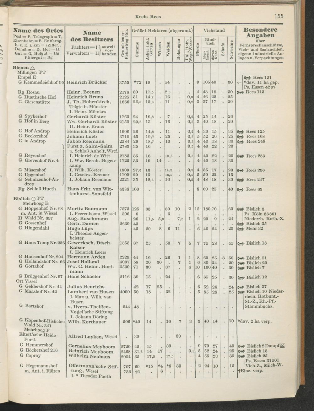 Landwirtschaftliches Adreßbuch der Rittergüter und Höfe der Rheinprovinz einschl. Landesteil Birkenfeld : Verzeichnis sämtlicher Rittergüter, Güter und Höfe von ca. 10 ha aufwärts mit Angabe der Gutseigenschaft, der Gesamtfläche und des Flächeninhalts der einzelnen Kulturen, des Viehbestandes, der eigenen industriellen Anlagen und Fernsprechanschlüsse, Angabe der Besitzer, Pächter und Verwalter, der Post-, Telegraphen- und Eisenbahnstationen und deren Entfernung vom Gute, der Land- und Amtsgerichte, einem alphabetischen Orts- und Personenregister, einem Verzeichnis der wichtigsten staatlichen Behörden und Dienststellen, der landwirtschaftlichen Vereine und Körperschaften und einer mehrfarbigen Landkarte im Maßstabe 1 : 1000000 / mit Unterstützung der landwirtschaftskammer zu Bonn a. Rh. nach amtlichen Quellen und auf Grund direkter Angaben bearb. von Ernst Seyfert und Hans Wehner ; mit einer Einleitung von Müller und Engels