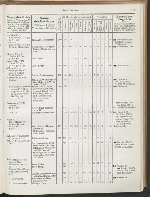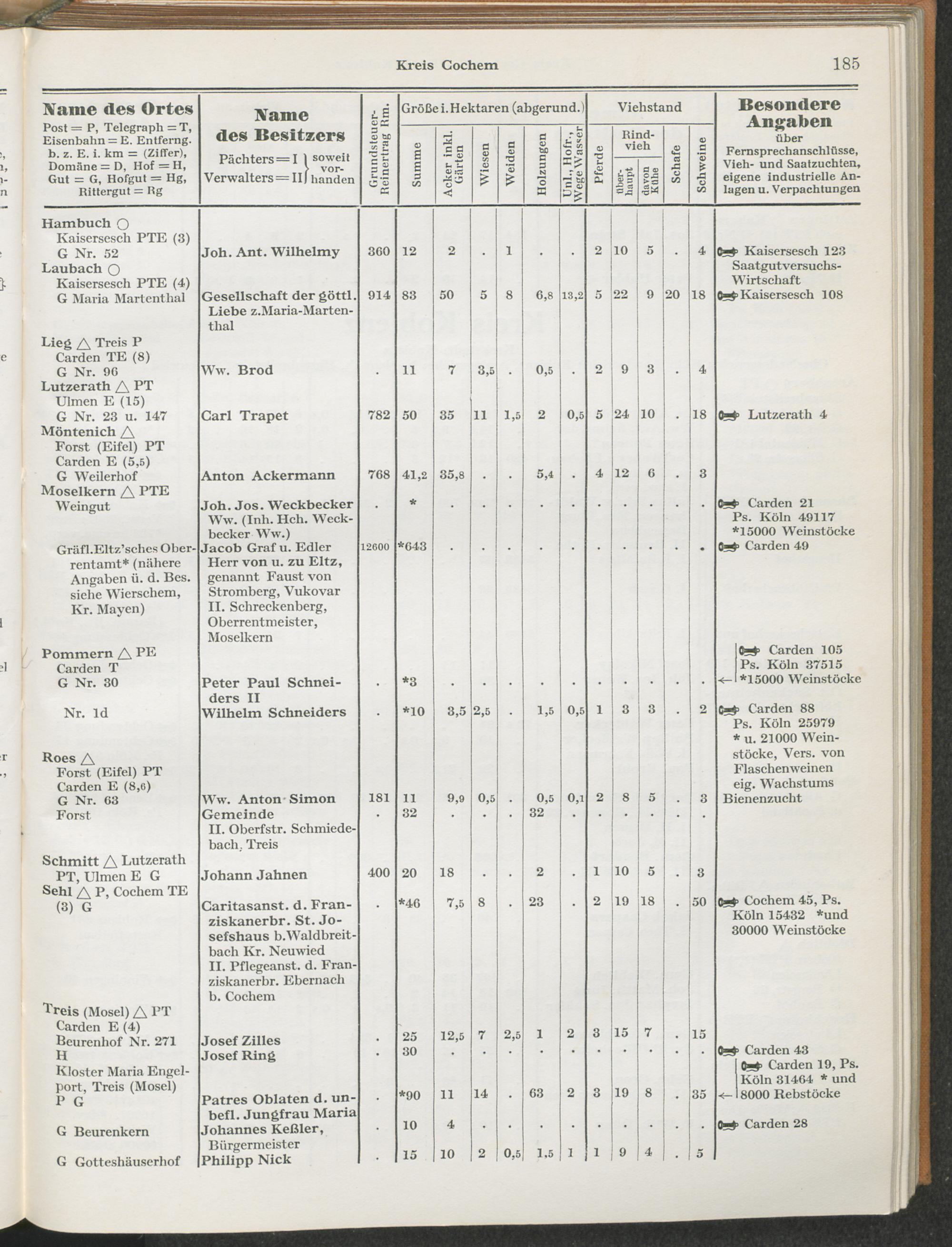 Landwirtschaftliches Adreßbuch der Rittergüter und Höfe der Rheinprovinz einschl. Landesteil Birkenfeld : Verzeichnis sämtlicher Rittergüter, Güter und Höfe von ca. 10 ha aufwärts mit Angabe der Gutseigenschaft, der Gesamtfläche und des Flächeninhalts der einzelnen Kulturen, des Viehbestandes, der eigenen industriellen Anlagen und Fernsprechanschlüsse, Angabe der Besitzer, Pächter und Verwalter, der Post-, Telegraphen- und Eisenbahnstationen und deren Entfernung vom Gute, der Land- und Amtsgerichte, einem alphabetischen Orts- und Personenregister, einem Verzeichnis der wichtigsten staatlichen Behörden und Dienststellen, der landwirtschaftlichen Vereine und Körperschaften und einer mehrfarbigen Landkarte im Maßstabe 1 : 1000000 / mit Unterstützung der landwirtschaftskammer zu Bonn a. Rh. nach amtlichen Quellen und auf Grund direkter Angaben bearb. von Ernst Seyfert und Hans Wehner ; mit einer Einleitung von Müller und Engels