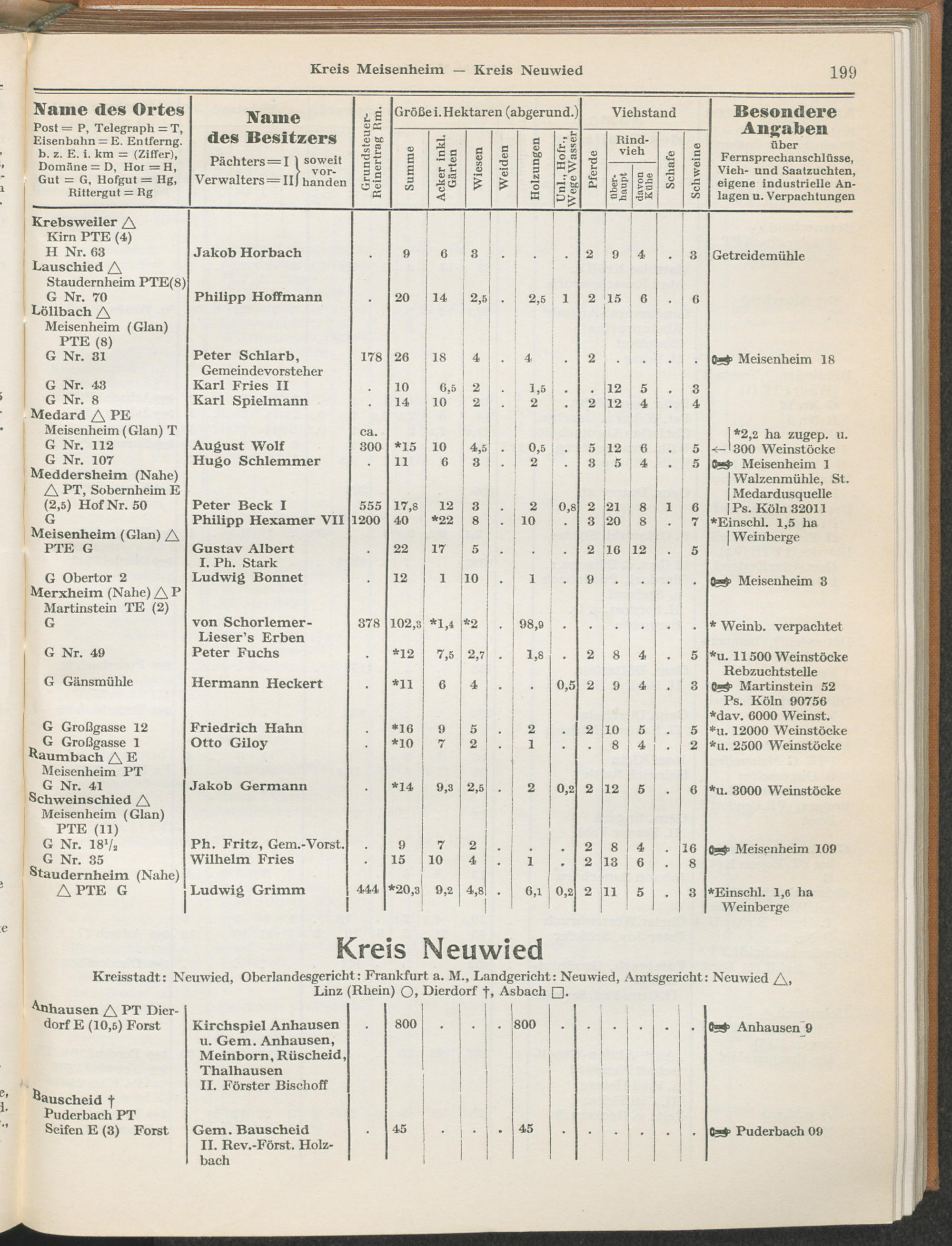 Landwirtschaftliches Adreßbuch der Rittergüter und Höfe der Rheinprovinz einschl. Landesteil Birkenfeld : Verzeichnis sämtlicher Rittergüter, Güter und Höfe von ca. 10 ha aufwärts mit Angabe der Gutseigenschaft, der Gesamtfläche und des Flächeninhalts der einzelnen Kulturen, des Viehbestandes, der eigenen industriellen Anlagen und Fernsprechanschlüsse, Angabe der Besitzer, Pächter und Verwalter, der Post-, Telegraphen- und Eisenbahnstationen und deren Entfernung vom Gute, der Land- und Amtsgerichte, einem alphabetischen Orts- und Personenregister, einem Verzeichnis der wichtigsten staatlichen Behörden und Dienststellen, der landwirtschaftlichen Vereine und Körperschaften und einer mehrfarbigen Landkarte im Maßstabe 1 : 1000000 / mit Unterstützung der landwirtschaftskammer zu Bonn a. Rh. nach amtlichen Quellen und auf Grund direkter Angaben bearb. von Ernst Seyfert und Hans Wehner ; mit einer Einleitung von Müller und Engels
