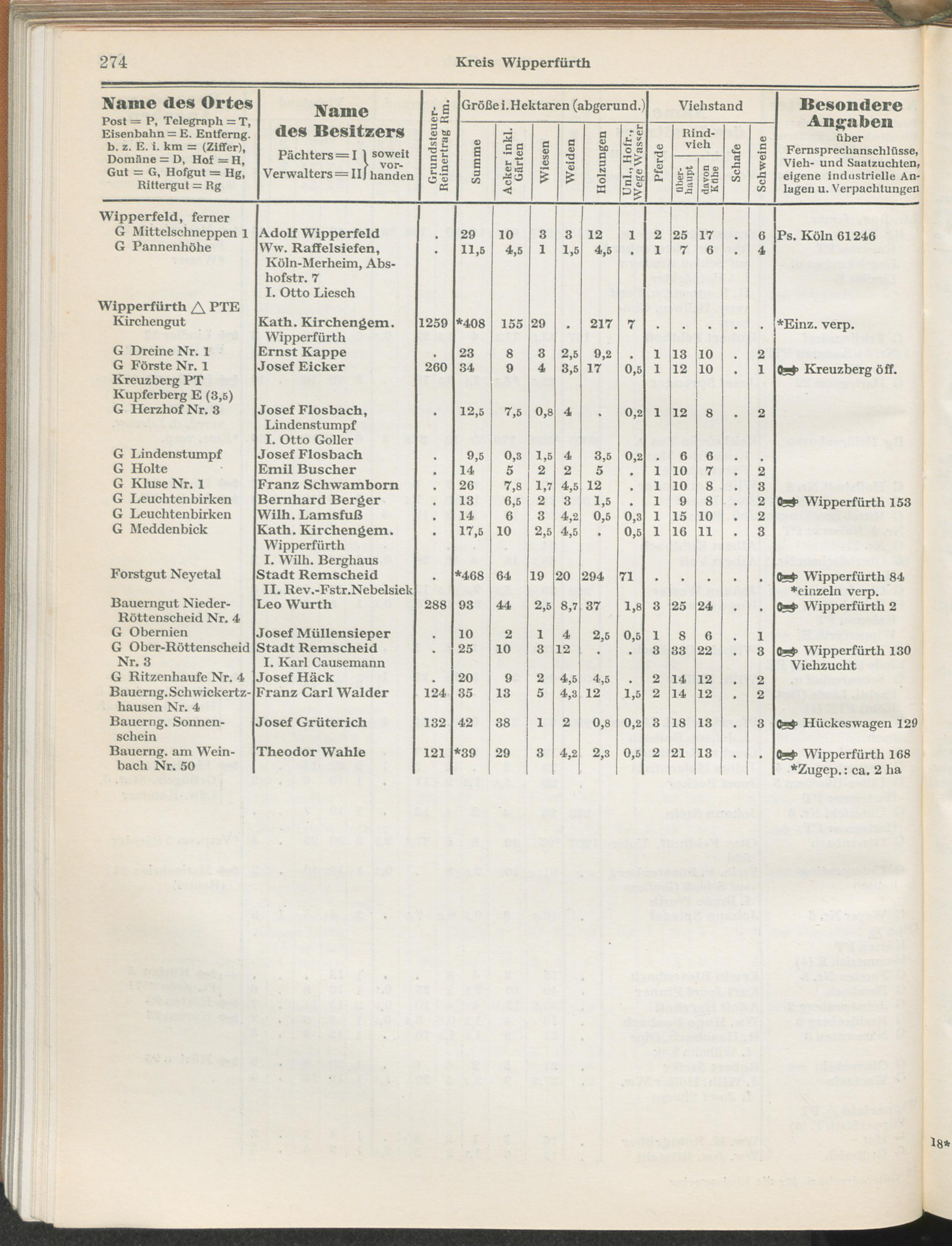 Landwirtschaftliches Adreßbuch der Rittergüter und Höfe der Rheinprovinz einschl. Landesteil Birkenfeld : Verzeichnis sämtlicher Rittergüter, Güter und Höfe von ca. 10 ha aufwärts mit Angabe der Gutseigenschaft, der Gesamtfläche und des Flächeninhalts der einzelnen Kulturen, des Viehbestandes, der eigenen industriellen Anlagen und Fernsprechanschlüsse, Angabe der Besitzer, Pächter und Verwalter, der Post-, Telegraphen- und Eisenbahnstationen und deren Entfernung vom Gute, der Land- und Amtsgerichte, einem alphabetischen Orts- und Personenregister, einem Verzeichnis der wichtigsten staatlichen Behörden und Dienststellen, der landwirtschaftlichen Vereine und Körperschaften und einer mehrfarbigen Landkarte im Maßstabe 1 : 1000000 / mit Unterstützung der landwirtschaftskammer zu Bonn a. Rh. nach amtlichen Quellen und auf Grund direkter Angaben bearb. von Ernst Seyfert und Hans Wehner ; mit einer Einleitung von Müller und Engels