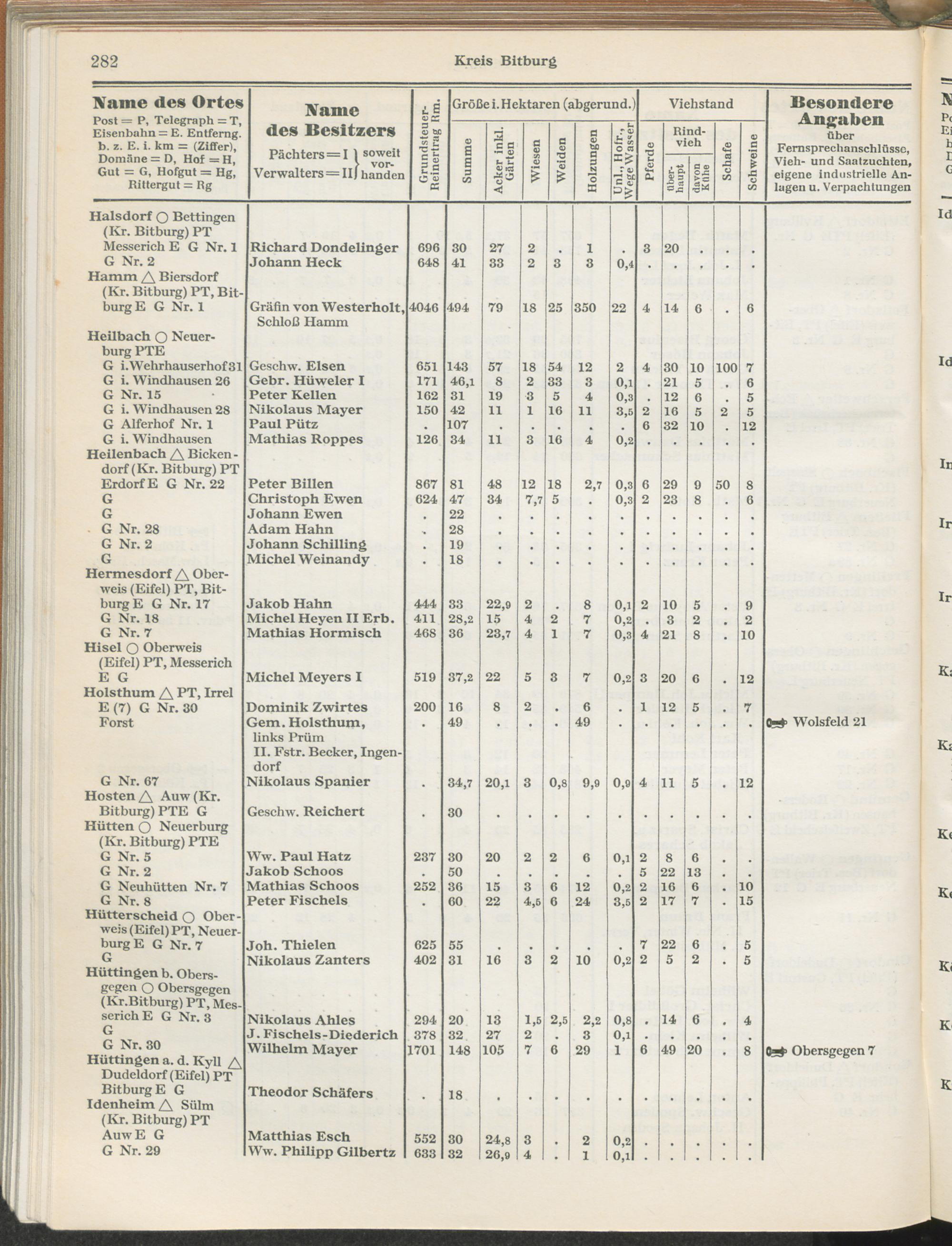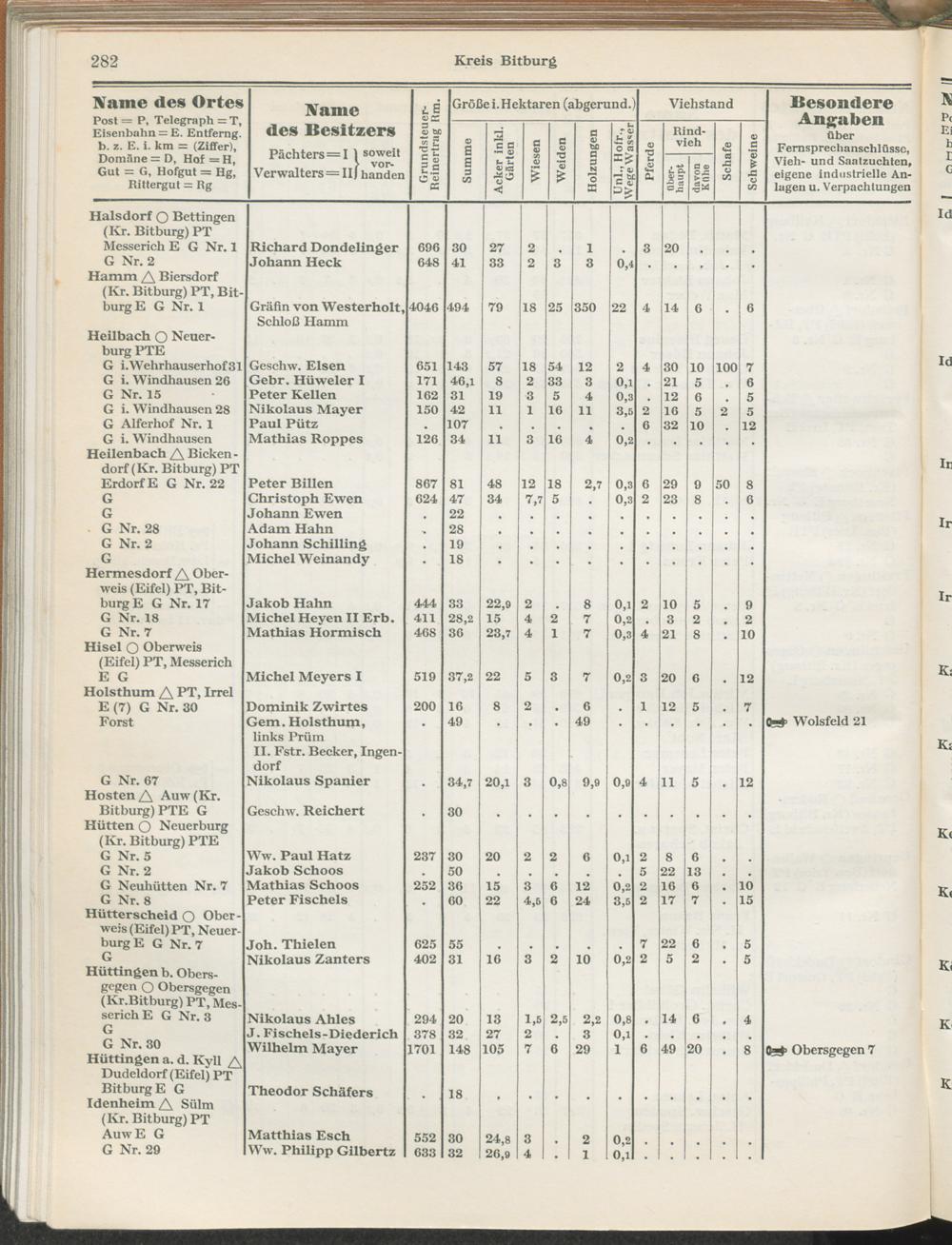Landwirtschaftliches Adreßbuch der Rittergüter und Höfe der Rheinprovinz einschl. Landesteil Birkenfeld : Verzeichnis sämtlicher Rittergüter, Güter und Höfe von ca. 10 ha aufwärts mit Angabe der Gutseigenschaft, der Gesamtfläche und des Flächeninhalts der einzelnen Kulturen, des Viehbestandes, der eigenen industriellen Anlagen und Fernsprechanschlüsse, Angabe der Besitzer, Pächter und Verwalter, der Post-, Telegraphen- und Eisenbahnstationen und deren Entfernung vom Gute, der Land- und Amtsgerichte, einem alphabetischen Orts- und Personenregister, einem Verzeichnis der wichtigsten staatlichen Behörden und Dienststellen, der landwirtschaftlichen Vereine und Körperschaften und einer mehrfarbigen Landkarte im Maßstabe 1 : 1000000 / mit Unterstützung der landwirtschaftskammer zu Bonn a. Rh. nach amtlichen Quellen und auf Grund direkter Angaben bearb. von Ernst Seyfert und Hans Wehner ; mit einer Einleitung von Müller und Engels
