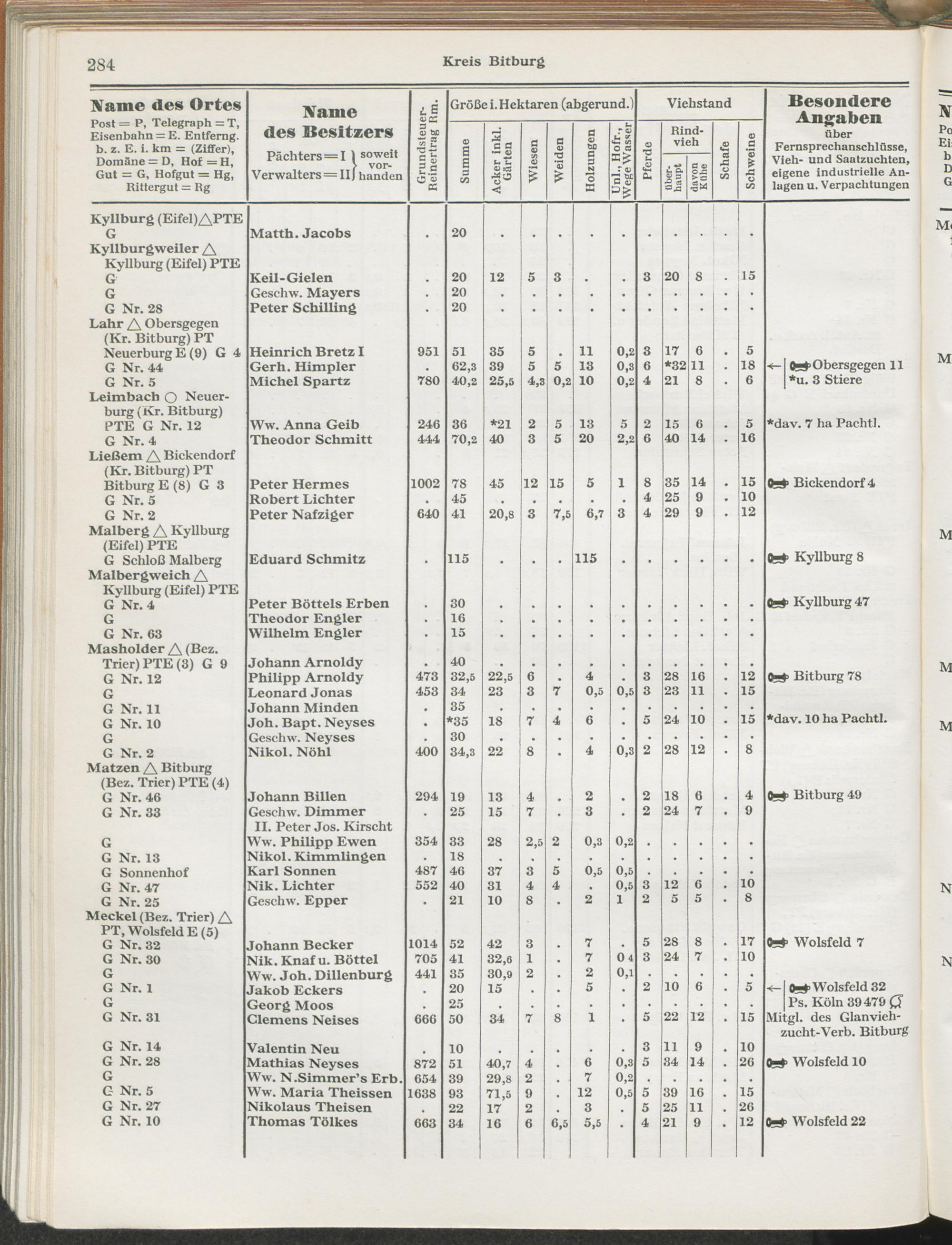 Landwirtschaftliches Adreßbuch der Rittergüter und Höfe der Rheinprovinz einschl. Landesteil Birkenfeld : Verzeichnis sämtlicher Rittergüter, Güter und Höfe von ca. 10 ha aufwärts mit Angabe der Gutseigenschaft, der Gesamtfläche und des Flächeninhalts der einzelnen Kulturen, des Viehbestandes, der eigenen industriellen Anlagen und Fernsprechanschlüsse, Angabe der Besitzer, Pächter und Verwalter, der Post-, Telegraphen- und Eisenbahnstationen und deren Entfernung vom Gute, der Land- und Amtsgerichte, einem alphabetischen Orts- und Personenregister, einem Verzeichnis der wichtigsten staatlichen Behörden und Dienststellen, der landwirtschaftlichen Vereine und Körperschaften und einer mehrfarbigen Landkarte im Maßstabe 1 : 1000000 / mit Unterstützung der landwirtschaftskammer zu Bonn a. Rh. nach amtlichen Quellen und auf Grund direkter Angaben bearb. von Ernst Seyfert und Hans Wehner ; mit einer Einleitung von Müller und Engels
