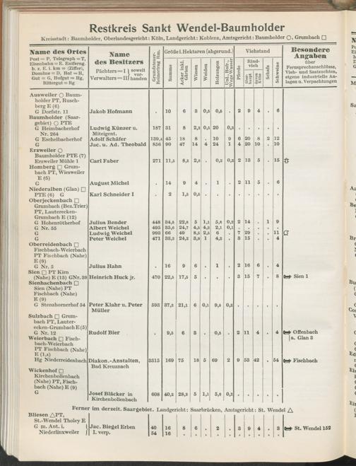 Landwirtschaftliches Adreßbuch der Rittergüter und Höfe der Rheinprovinz einschl. Landesteil Birkenfeld : Verzeichnis sämtlicher Rittergüter, Güter und Höfe von ca. 10 ha aufwärts mit Angabe der Gutseigenschaft, der Gesamtfläche und des Flächeninhalts der einzelnen Kulturen, des Viehbestandes, der eigenen industriellen Anlagen und Fernsprechanschlüsse, Angabe der Besitzer, Pächter und Verwalter, der Post-, Telegraphen- und Eisenbahnstationen und deren Entfernung vom Gute, der Land- und Amtsgerichte, einem alphabetischen Orts- und Personenregister, einem Verzeichnis der wichtigsten staatlichen Behörden und Dienststellen, der landwirtschaftlichen Vereine und Körperschaften und einer mehrfarbigen Landkarte im Maßstabe 1 : 1000000 / mit Unterstützung der landwirtschaftskammer zu Bonn a. Rh. nach amtlichen Quellen und auf Grund direkter Angaben bearb. von Ernst Seyfert und Hans Wehner ; mit einer Einleitung von Müller und Engels
