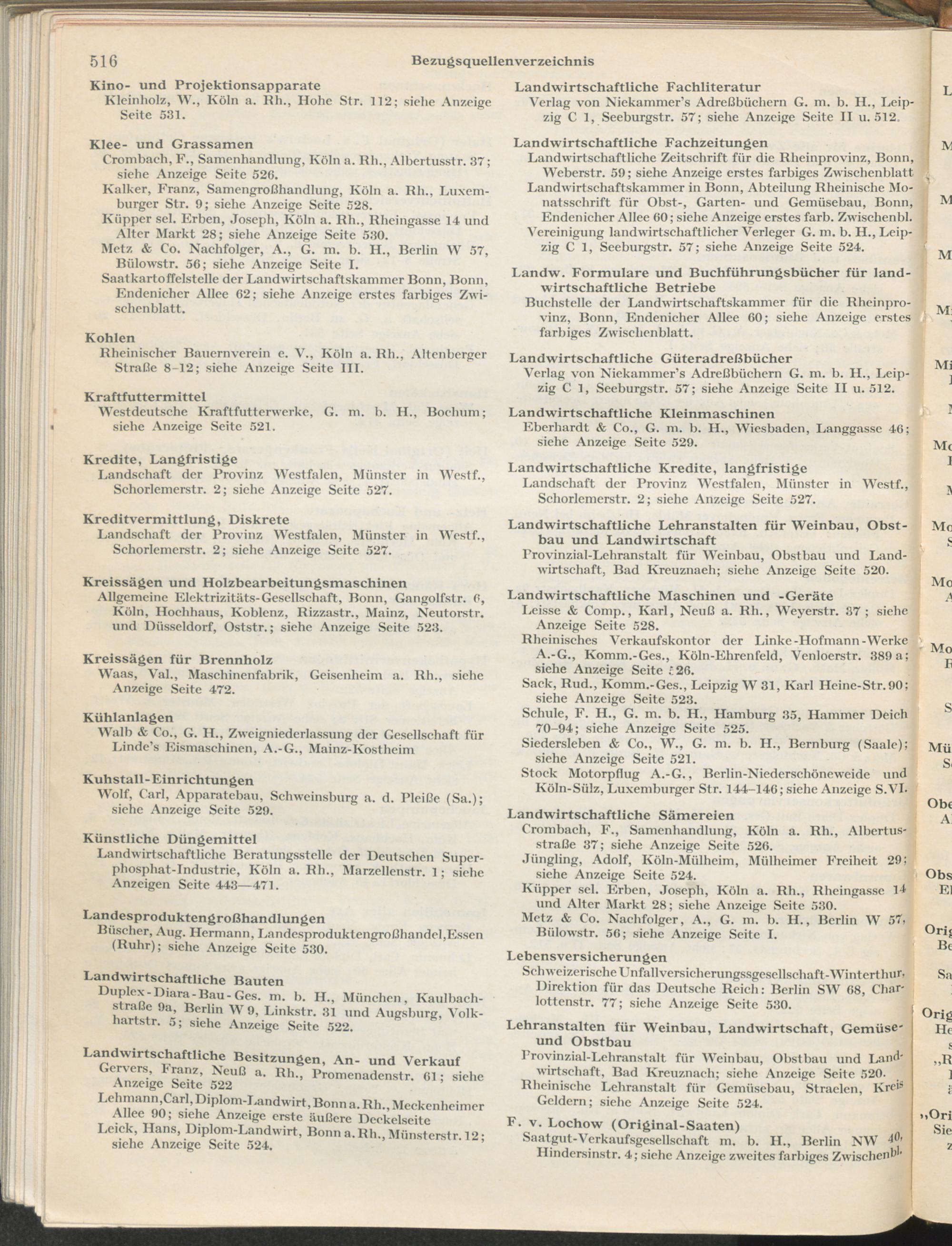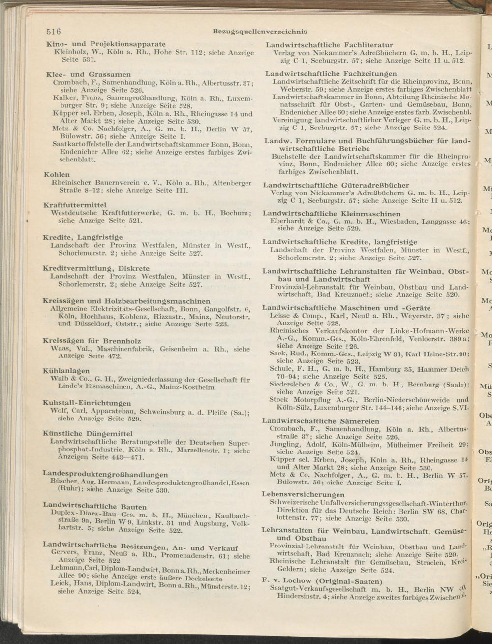 Landwirtschaftliches Adreßbuch der Rittergüter und Höfe der Rheinprovinz einschl. Landesteil Birkenfeld : Verzeichnis sämtlicher Rittergüter, Güter und Höfe von ca. 10 ha aufwärts mit Angabe der Gutseigenschaft, der Gesamtfläche und des Flächeninhalts der einzelnen Kulturen, des Viehbestandes, der eigenen industriellen Anlagen und Fernsprechanschlüsse, Angabe der Besitzer, Pächter und Verwalter, der Post-, Telegraphen- und Eisenbahnstationen und deren Entfernung vom Gute, der Land- und Amtsgerichte, einem alphabetischen Orts- und Personenregister, einem Verzeichnis der wichtigsten staatlichen Behörden und Dienststellen, der landwirtschaftlichen Vereine und Körperschaften und einer mehrfarbigen Landkarte im Maßstabe 1 : 1000000 / mit Unterstützung der landwirtschaftskammer zu Bonn a. Rh. nach amtlichen Quellen und auf Grund direkter Angaben bearb. von Ernst Seyfert und Hans Wehner ; mit einer Einleitung von Müller und Engels