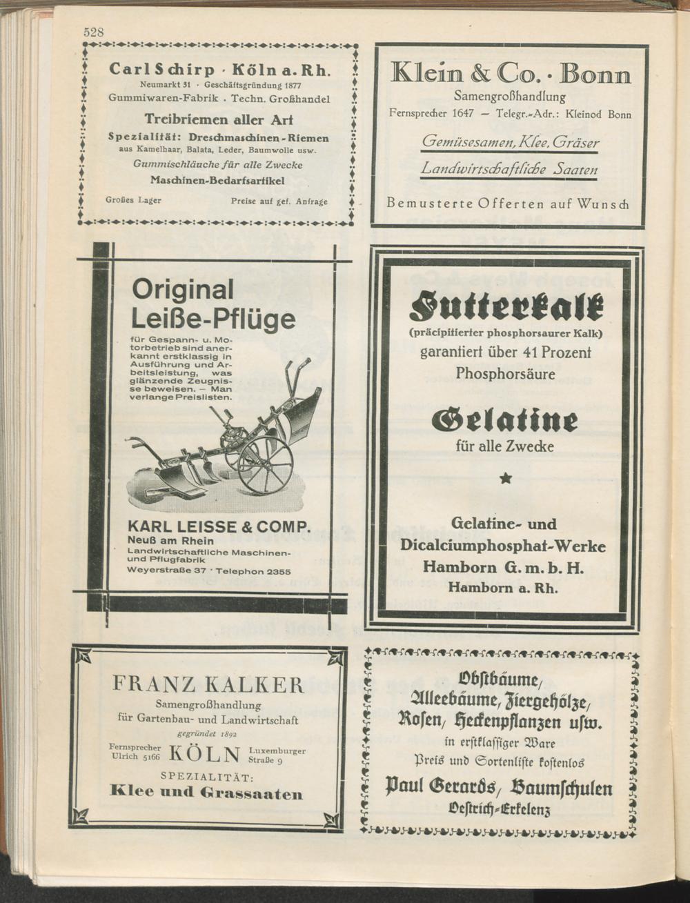 Landwirtschaftliches Adreßbuch der Rittergüter und Höfe der Rheinprovinz einschl. Landesteil Birkenfeld : Verzeichnis sämtlicher Rittergüter, Güter und Höfe von ca. 10 ha aufwärts mit Angabe der Gutseigenschaft, der Gesamtfläche und des Flächeninhalts der einzelnen Kulturen, des Viehbestandes, der eigenen industriellen Anlagen und Fernsprechanschlüsse, Angabe der Besitzer, Pächter und Verwalter, der Post-, Telegraphen- und Eisenbahnstationen und deren Entfernung vom Gute, der Land- und Amtsgerichte, einem alphabetischen Orts- und Personenregister, einem Verzeichnis der wichtigsten staatlichen Behörden und Dienststellen, der landwirtschaftlichen Vereine und Körperschaften und einer mehrfarbigen Landkarte im Maßstabe 1 : 1000000 / mit Unterstützung der landwirtschaftskammer zu Bonn a. Rh. nach amtlichen Quellen und auf Grund direkter Angaben bearb. von Ernst Seyfert und Hans Wehner ; mit einer Einleitung von Müller und Engels