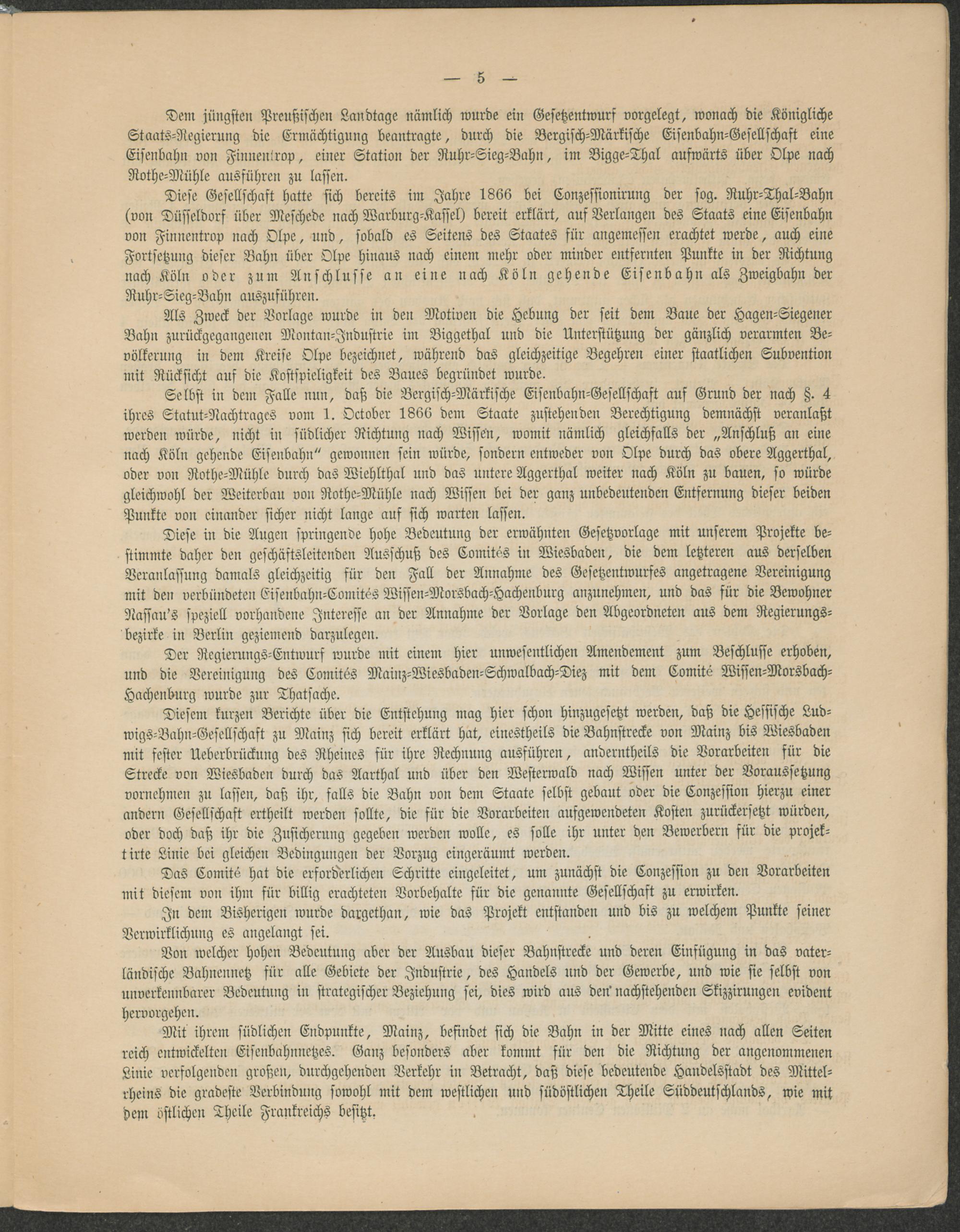 Projekt einer Eisenbahn von Mainz über Wiesbaden durch das Aarthal und über den Westerwald nach Wissen a. d. Sieg / veröff. in dem Auftr. der in den betheiligten Gemeinden bestehenden Comité's von dem Central-Comité in Wiesbaden