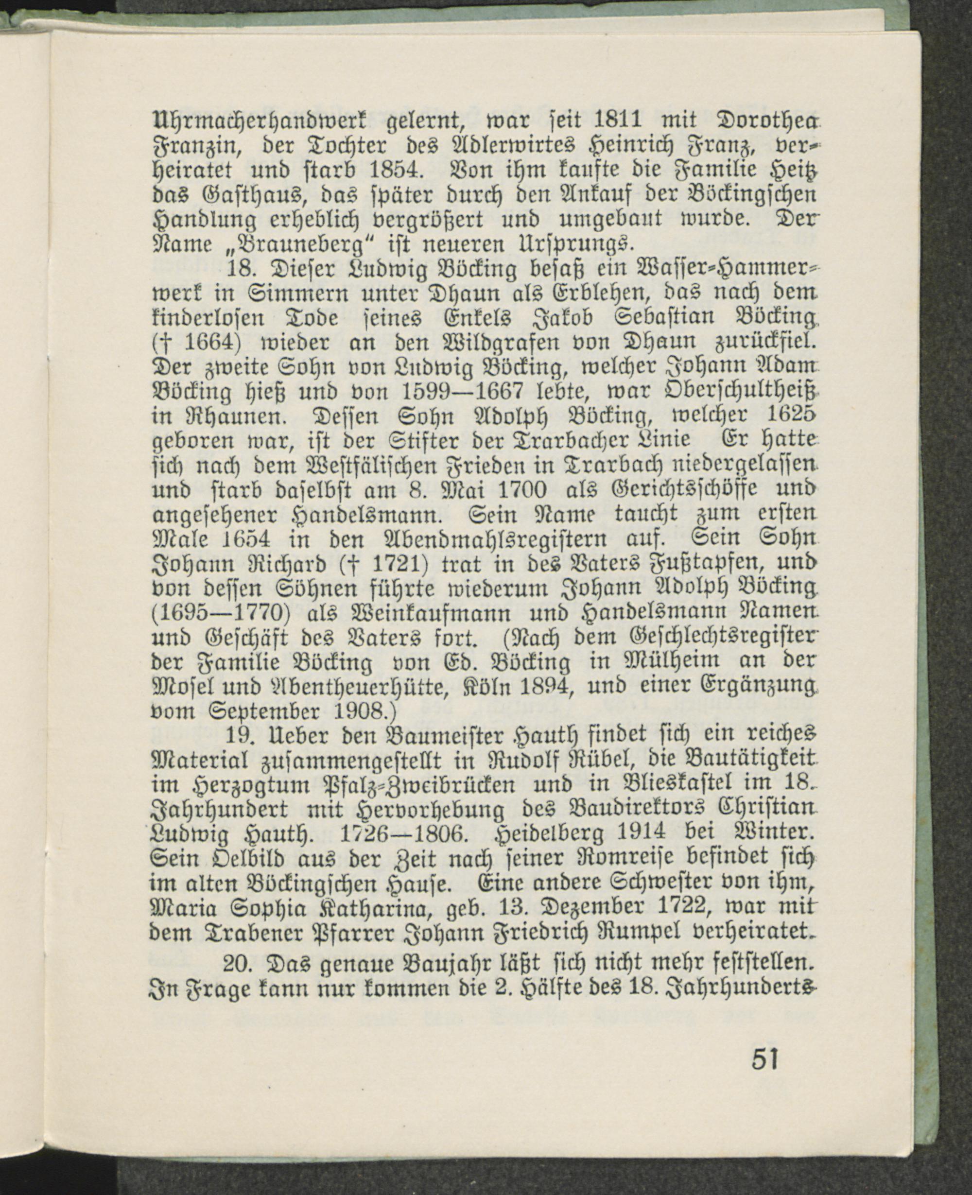 Goethe in Trarbach und sein Besuch bei Ludwig Böcking : mit einem Bildnis Goethes nach Joh. Heinr. Lips und drei Böckingschen Familienbildern sowie der Wiedergabe einer ältesten, naturechten Ansicht von Alt-Trarbach, einziger Kupferstich aus der Franzosenzeit um 1800 / von Pfarrer Rodewald