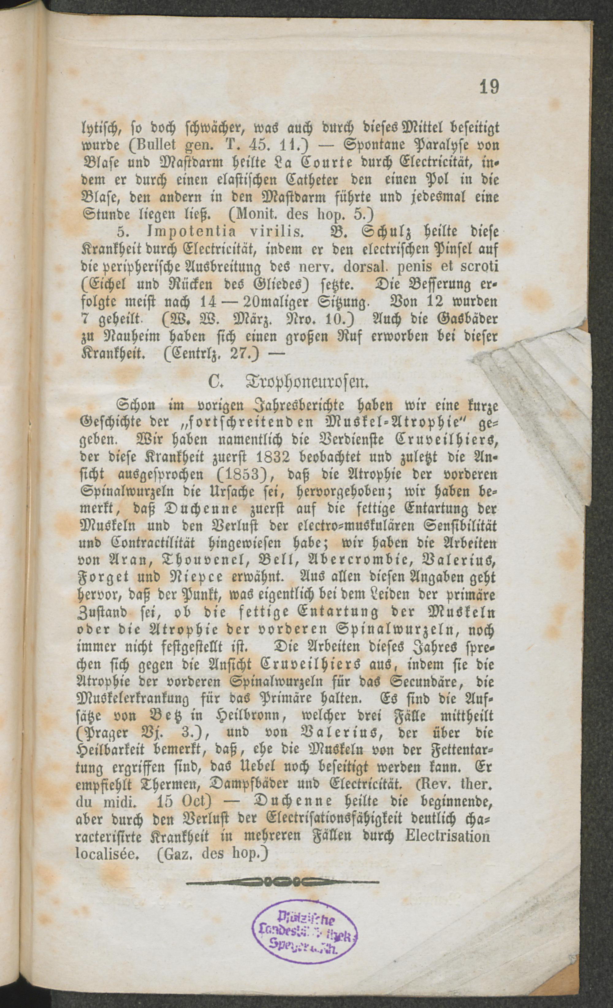 Bericht über die Fortschritte im Gebiete der Krankheiten des Nervensystems während des Jahres 1854 / von Dr. Erlenmeyer