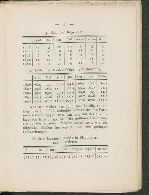 Temperaturtafel der Sommermonate für das Jahr 1899