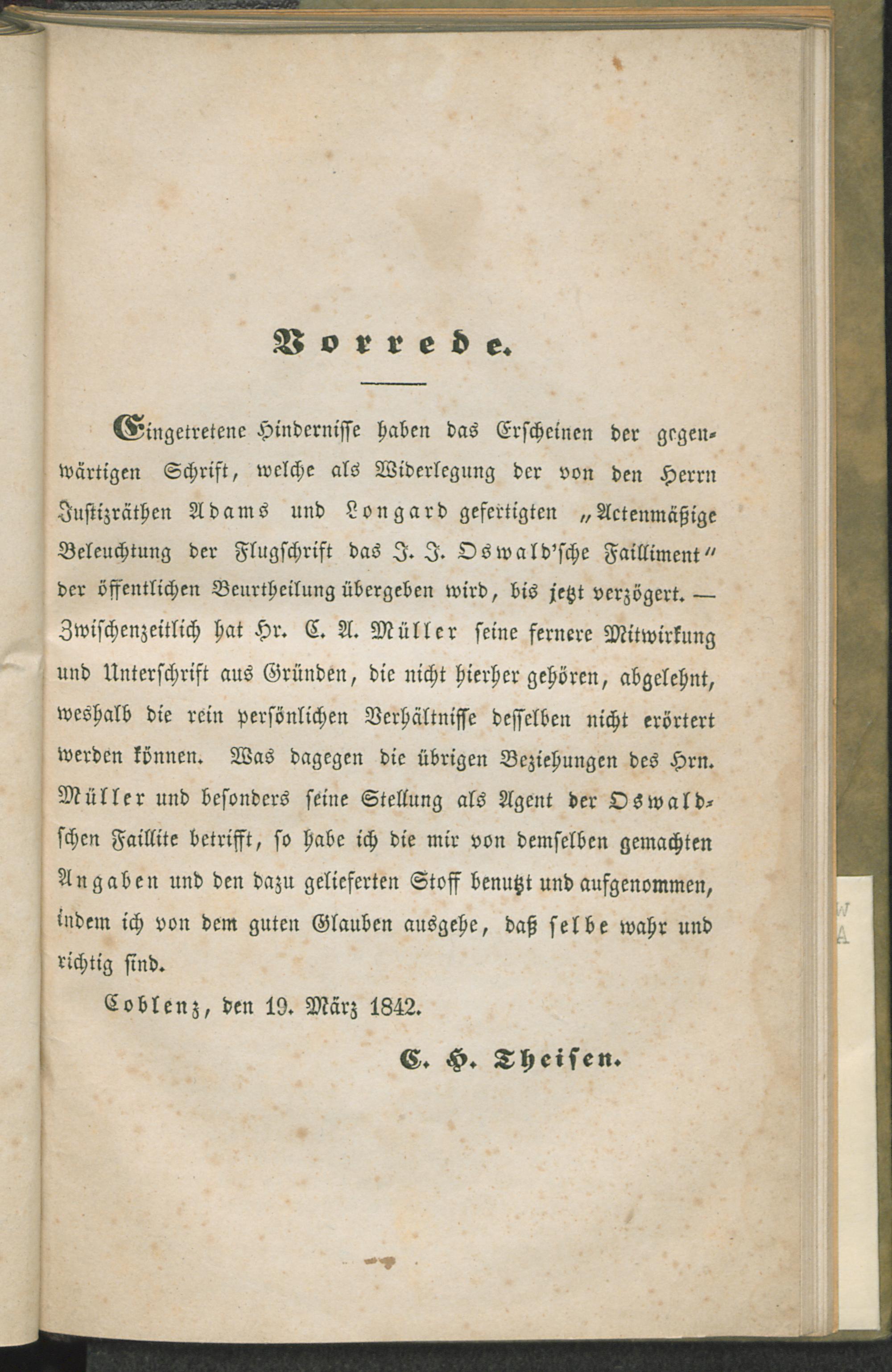 1. Das J. J. Oswald'sche Failliment