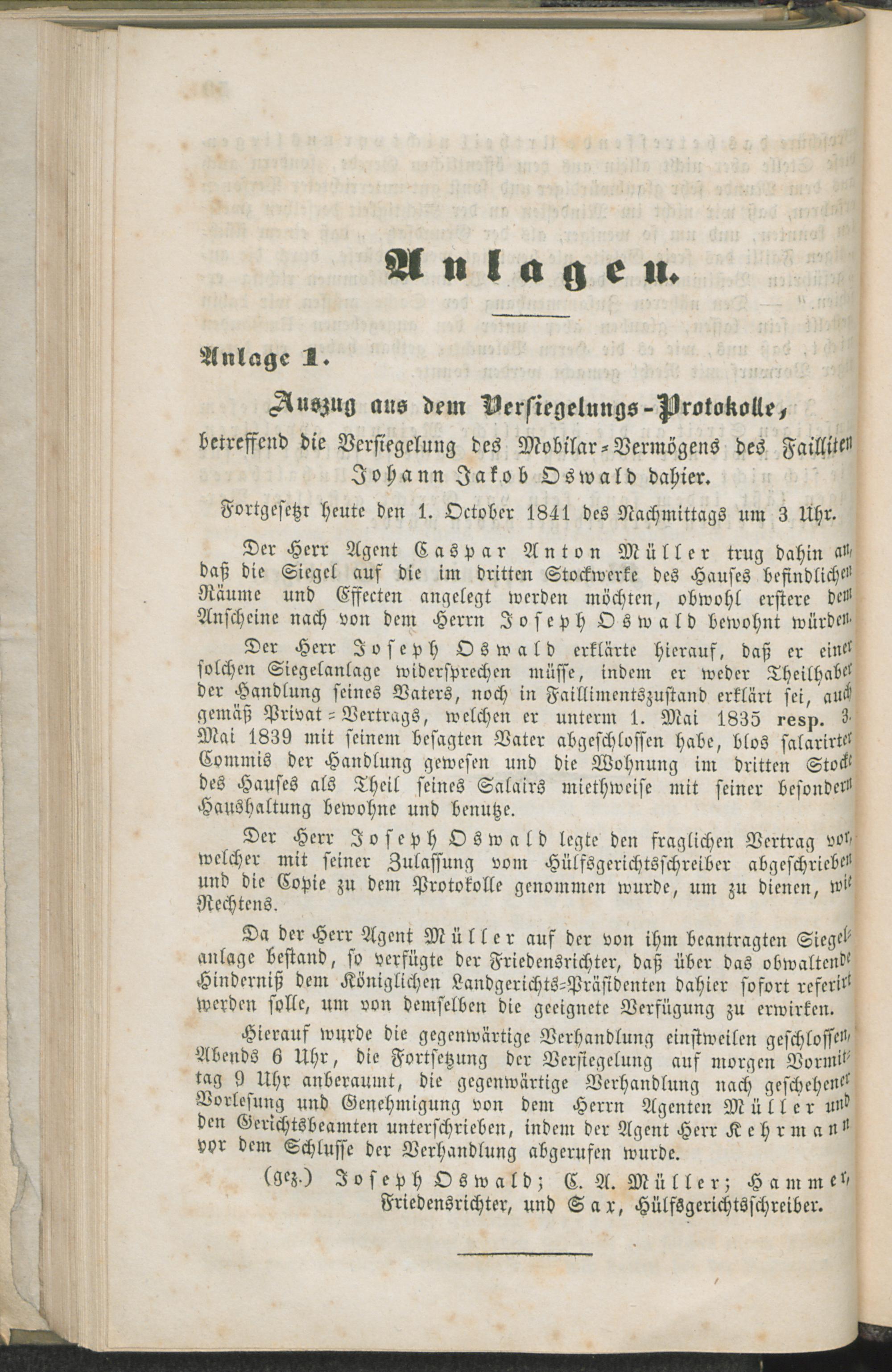 1. Das J. J. Oswald'sche Failliment