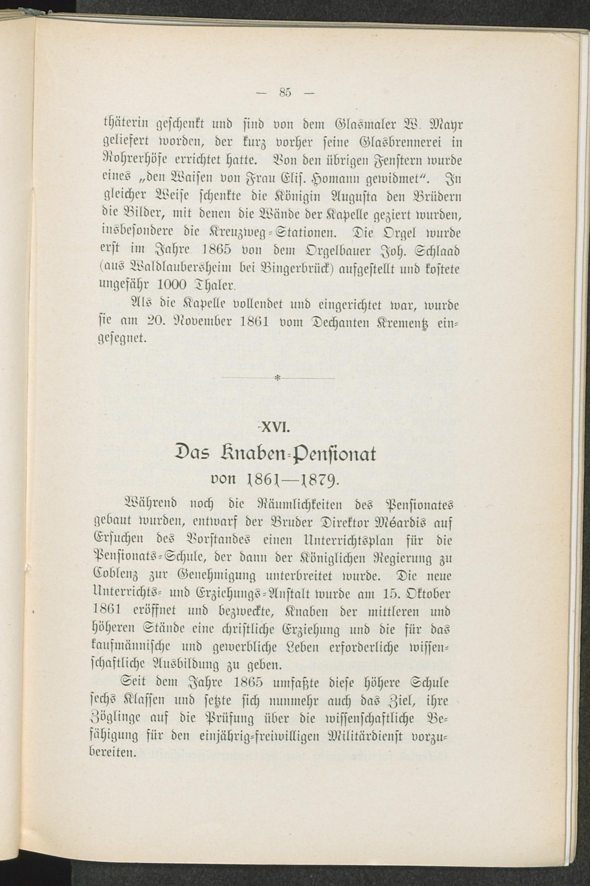 XVI. Das Knaben-Pensionat von 1861-1879.