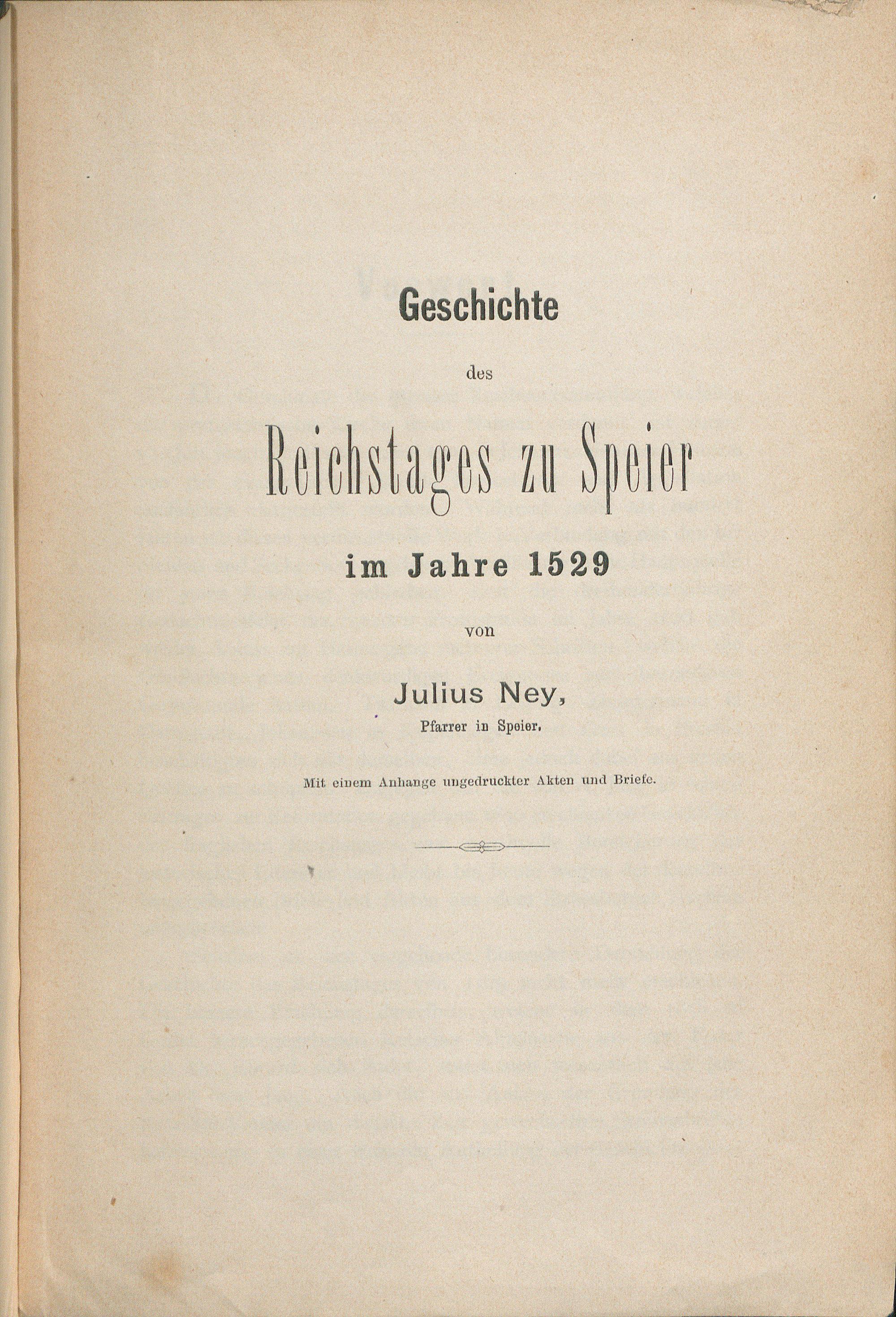 Geschichte des Reichstages zu Speier im Jahre 1529 / Julius Ney