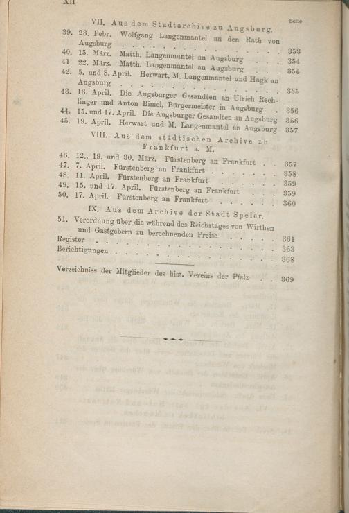 Verzeichnis der Mitglieder des historischen Vereines der Pfalz.
