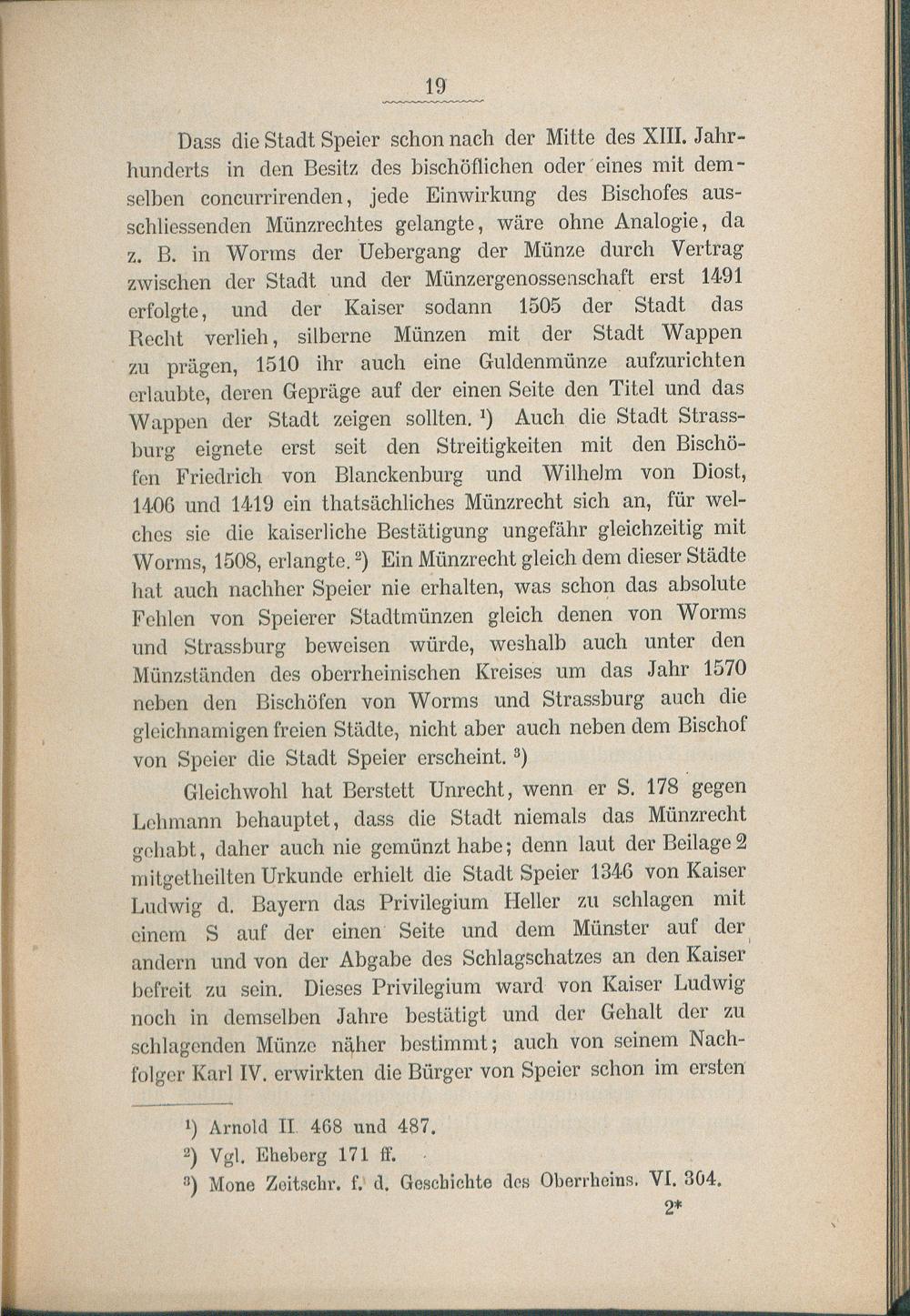 Versuch einer Speierer Münzgeschichte / von W. Harster