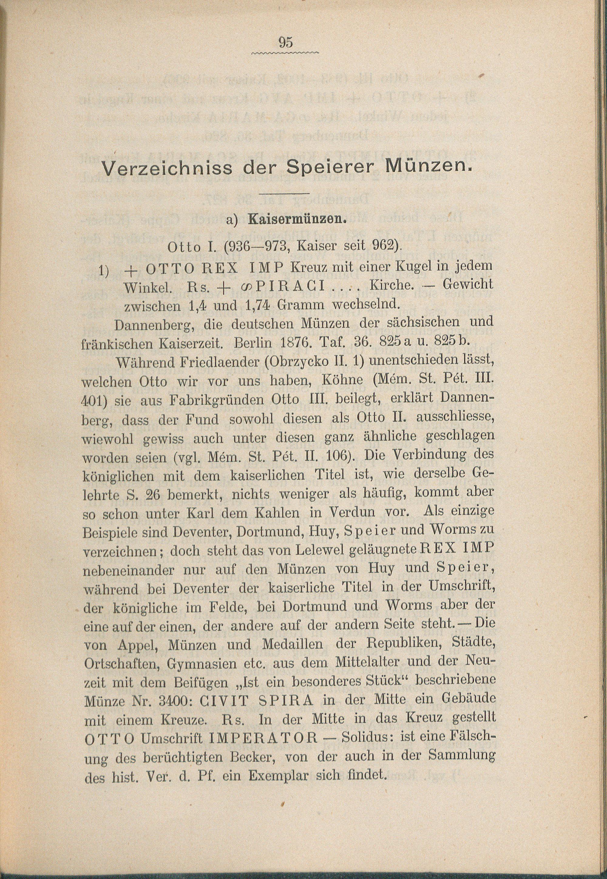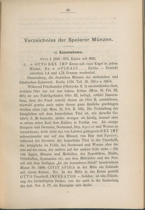 Verzeichnis der Speierer Münzen.