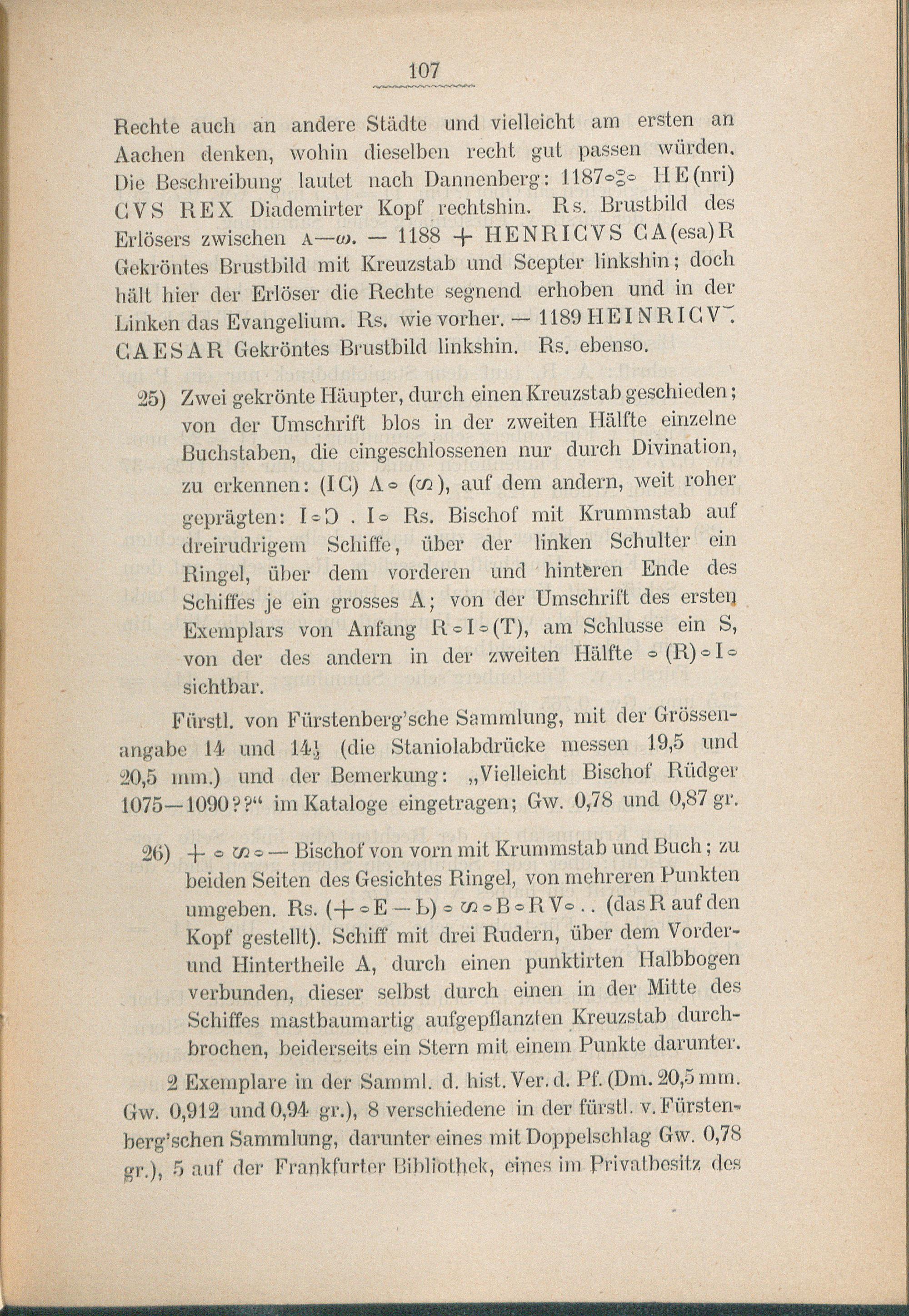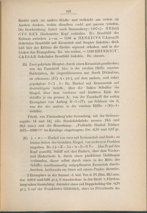 Verzeichnis der Speierer Münzen.