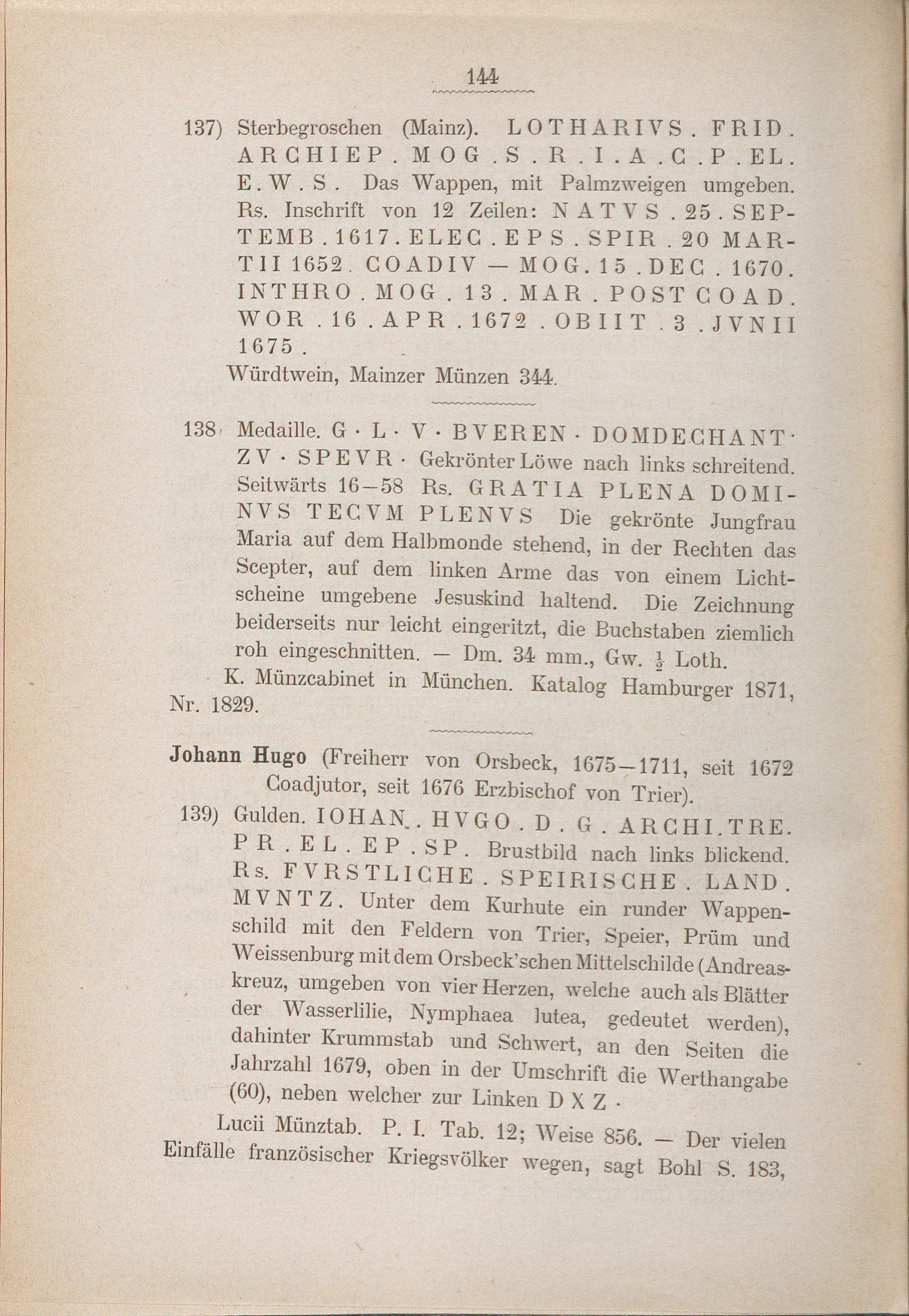 Verzeichnis der Speierer Münzen.
