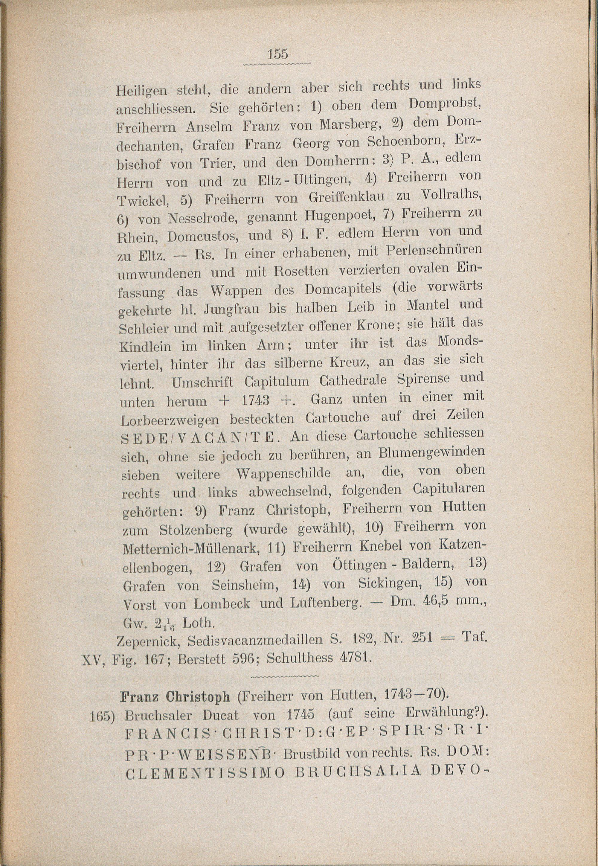 Verzeichnis der Speierer Münzen.