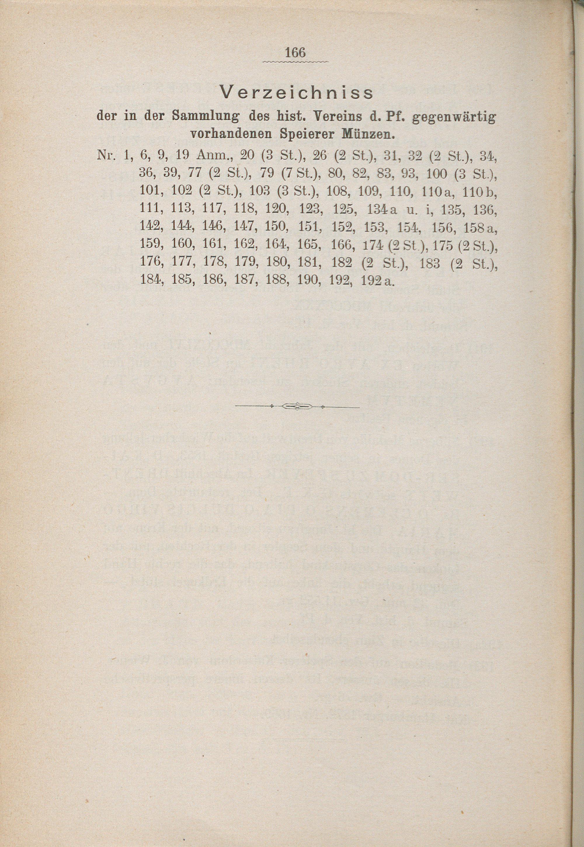 Verzeichnis der Speierer Münzen.